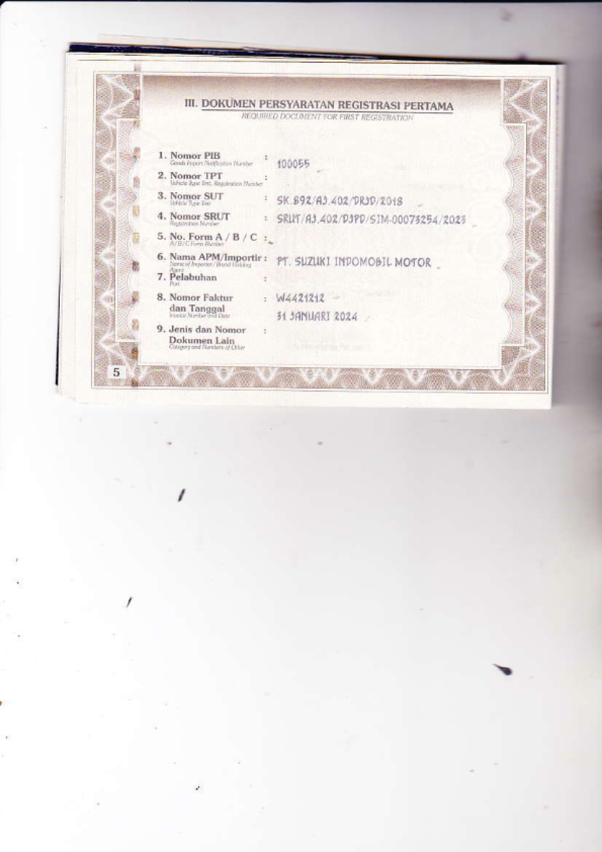 | KWT Blangko | : | Tidak Ada |