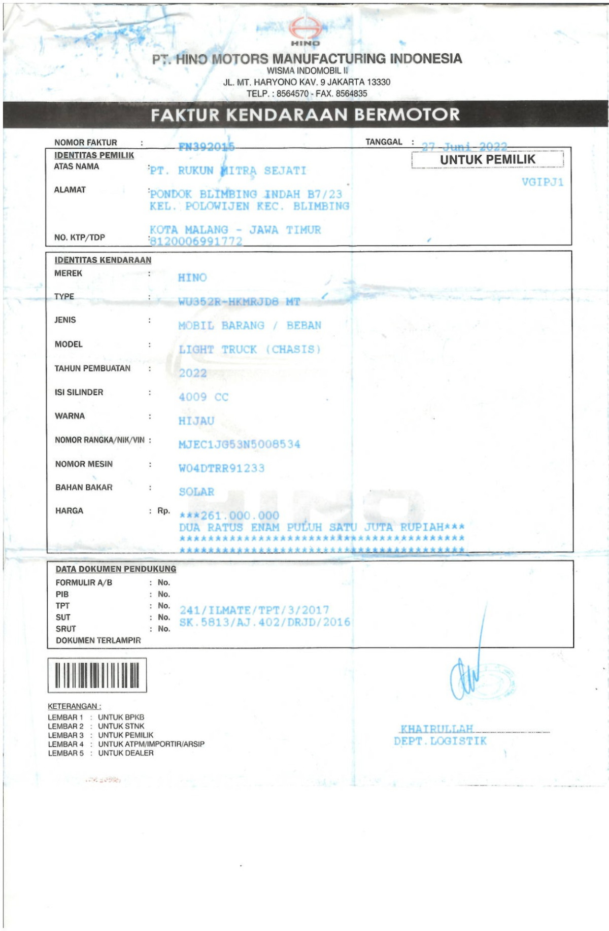 SEBELUM MELAKUKAN PENAWARAN HARAP CEK KONDISI UNIT SERTA DOKUMEN TERLEBIH DAHULU// UNIT DIKENAKAN BIAYA PPN 1,1% DARI HARGA TERBENTUK// PIC TOYIB : 081332024730