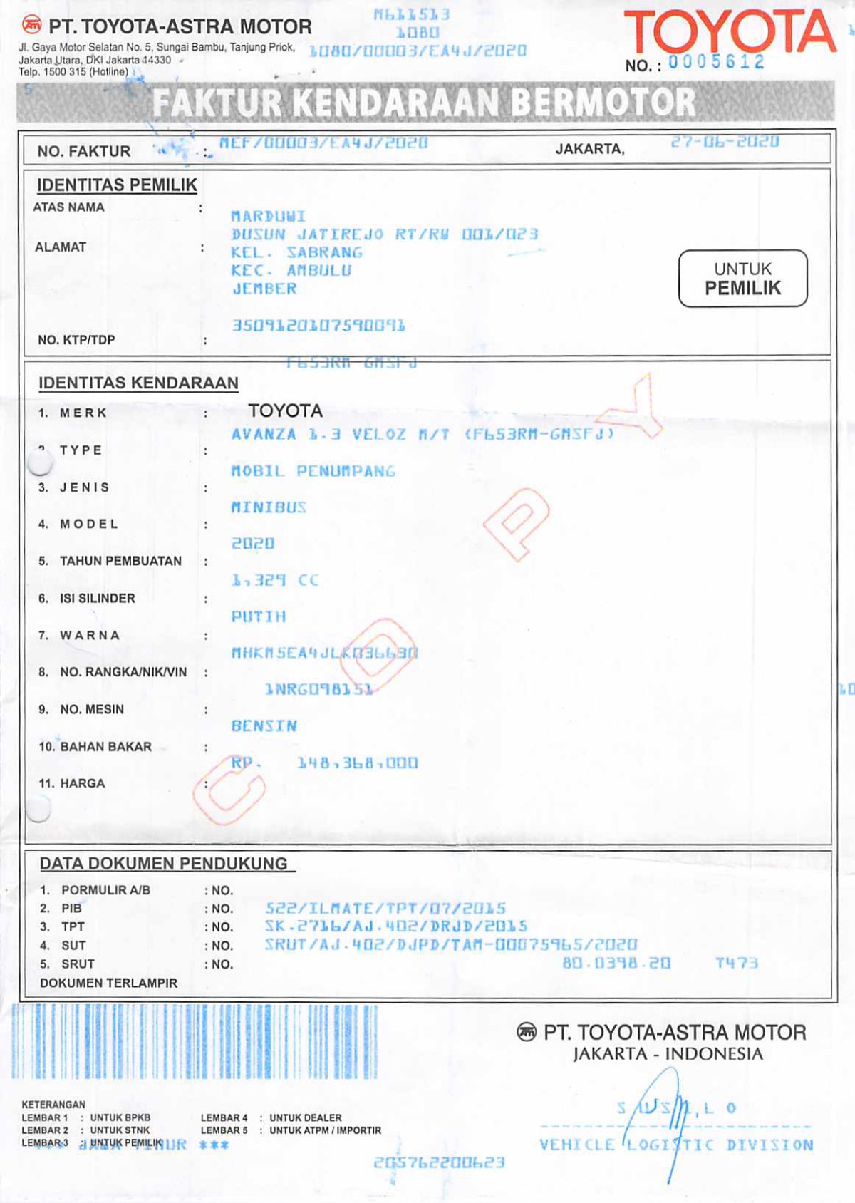 BPKB READY DI HO SMARTBID // UNIT TIDAK DILAKUKAN PENGECEKAN OLEH TIM SMARTBID// SEBELUM MELAKUKAN PENAWARAN HARAP CEK KONDISI UNIT DAN DOKUMEN TERLEBIH DAHULU// WAJIB MENGHUBUNGI PIC DAN DATANG KE LOKASI UNTUK PENGECEKAN UNIT// UNIT DILELANG APA ADANYA PERMASALAHAN YANG TIMBUL DILUAR TANGGUNG JAWAB SMARTBID// PENGAMBILAN UNIT SLIDE H+2 DARI PELUNASAN // JIKA INGIN MENGAMBIL UNIT HARAP UNTUK KONFIRMASI DAHULU KE SMARTBID // JIKA YANG MENGAMBIL BIDDER HARAP MEMBAWA KTP ASLI // JIKA PENGAMBILAN DIWAKILKAN WAJIB MEMBAWA SURAT KUASA ASLI // UNIT DIKENAKAN BIAYA PPN 1,1% DARI HARGA TERBENTUK// HUB PIC Ibu. Desrina / Bpk. Yusmiar 0823-6530-7560 / 0811-481-5003 // LOKASI UNIT HUBUNGI CS PUSAT 081188089292// Body baret penyok, pintu kiri tengah penyok, velg imitasi, bumper baret, bumper penyok, lampu kusam, heaadrest depan t/a, velg imitasi, indikasi airbag renggang pada dashboard, unit plat Jatim.//Gasket Cylinder Head | Rim (Fr-L) | Rim (Rr-L) | Spring (FR) | Tire (Rr-R) | Rim (Fr-R) | Gasket Cover Head | Coil Ignition | Spring (RR) | Rim (Rr-R) | Fuel Pump | Header | Rim (spare) | Tire (spare) | Shocbreakers (Rr) | Wheel Bearing (Fr) | Wheel Bearing (Rr) | Tire (Rr-L) | Tire (Fr-R) | Tire (Fr-L) | Clutch Bearing | Fan Belt | Brake Pad (Rr) | Brake Pad (Fr) | Battery | Radiator Fan | Brake Master | Engine Services (Light) | Clutch Plate | Radiator | Shocbreakers (Fr) | Spark Plug(s) | Aircon Evaporator/Carpet Floor (RR) | Carpet Floor (Mid) | Interior Saloon | Carpet Floor (FR-L) | Bolt Crane and Jack | Carpet Floor (FR-R) | Headrest (Fr-R) | Headrest (Fr-L) | Carpet | Tool Kit | Head Unit/Turn Lamp (Rr-R) | Roof Repair | Taillight (Rr-L) | Turn Lamp (Fr-L) | Door Repair (Trunk) | Headlight (Fr-L) | Headlight (Fr-R) | Turn Lamp (Fr-R) | Turn Lamp (Rr-L) | Taillight (Rr-R) | Door Repair (Rr-R) | Engine Hood Repair | Door Repair (Fr-L) | Bumper Repair (Fr) | Door Repair (Fr-R) | Door Repair (Rr-L) | Bumper Repair (Rr)