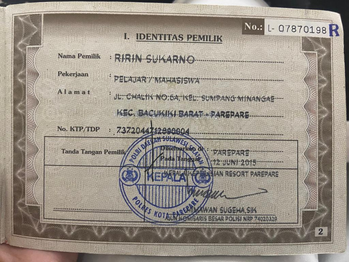| No. Rangka | : | MHKM1BA2JFK064213 |