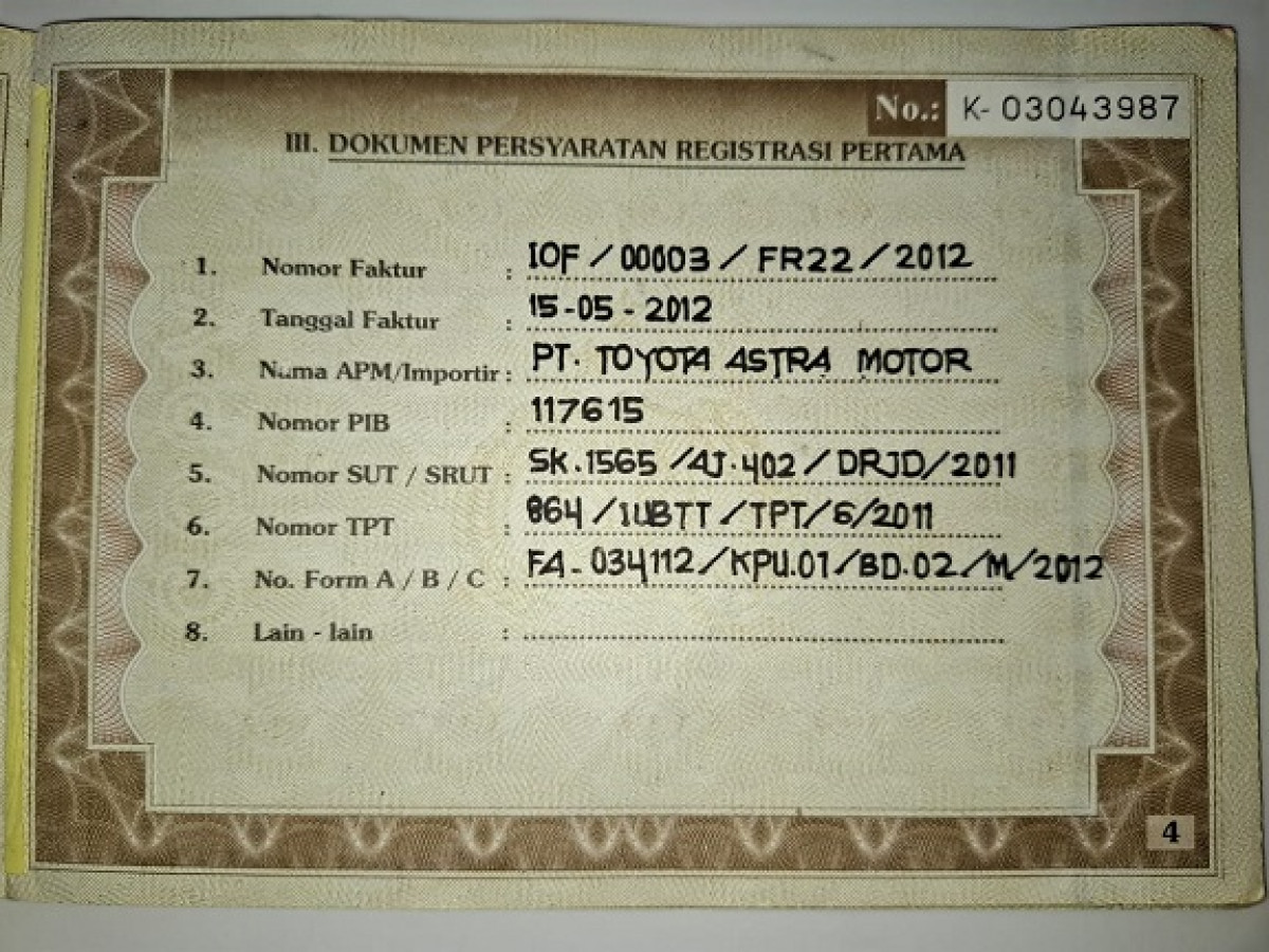 | No. Rangka | : | MR0FR22G7C0609498 |