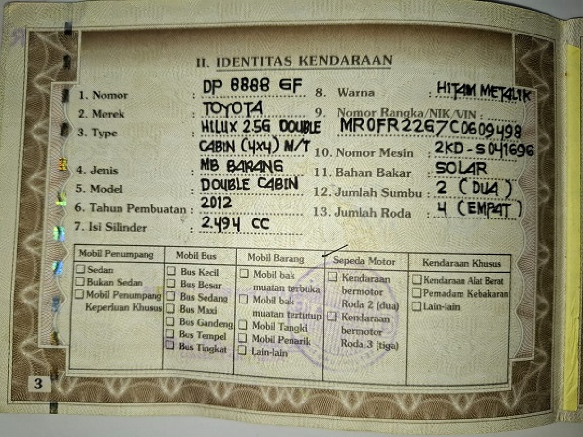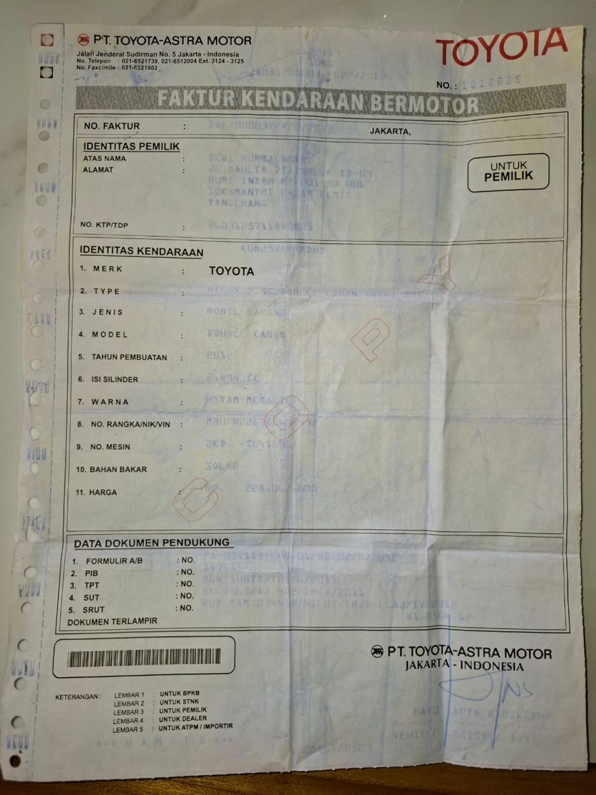 UNIT TIDAK DILAKUKAN PENGECEKAN OLEH TIM SMARTBID// SEBELUM MELAKUKAN PENAWARAN HARAP CEK KONDISI UNIT DAN DOKUMEN TERLEBIH DAHULU// WAJIB MENGHUBUNGI PIC DAN DATANG KE LOKASI UNTUK PENGECEKAN UNIT// UNIT DILELANG APA ADANYA PERMASALAHAN YANG TIMBUL DILUAR TANGGUNG JAWAB SMARTBID// PENGAMBILAN UNIT SLIDE H+2 DARI PELUNASAN // JIKA INGIN MENGAMBIL UNIT HARAP UNTUK KONFIRMASI DAHULU KE SMARTBID // JIKA YANG MENGAMBIL BIDDER HARAP MEMBAWA KTP ASLI // JIKA PENGAMBILAN DIWAKILKAN WAJIB MEMBAWA SURAT KUASA ASLI // UNIT DIKENAKAN BIAYA PPN 1,1% DARI HARGA TERBENTUK// HUB PIC Bpk. Adi 0852-9971-7153 // LOKASI UNIT HUBUNGI CS PUSAT 081188089292// Mesin berfungsi (pincang), Power steering rusak, 4x4 tidak berfungsi, AC tidak dingin, Klakson tidak berfungsi, Ban cadangan tidak ada, Alat mobil tidak ada, Mesin rembes oli//Coil Ignition | Spring (FR) | Spring (RR) | Gasket Cylinder Head | Tire (Fr-R) | Rim (spare) | Tire (Rr-L) | Gasket Cover Head | Aircon Evaporator | Radiator | Engine Services (Light) | Power Steering | Rack Steer | Tire (Rr-R) | Air Filter | Tire (Fr-L) | Tire (spare) | Clutch Plate | Radiator Fan | Fan Belt | Brake Pad (Rr) | Spark Plug(s) | Brake Master | Brake Pad (Fr) | Injector | Battery/Interior Saloon | Head Unit | Ceiling Lamp (Fr) | Carpet | Tool Kit | Bolt Crane and Jack | Ceiling Trim/Rim cover (Fr-L) | Rim cover (Rr-R) | Taillight (Rr-R) | Windshield Wiper | Roof Repair | Rim cover (Rr-L) | Cargo Panel Repair (Deck) | Emblem | Rim cover (Fr-R) | Fog Lamp (L) | Side Skirt Repair (L) | Turn Lamp (Rr-L) | Taillight (Rr-L) | Side Skirt Repair (R) | Headlight (Fr-L) | Mirror (R ) | Turn Lamp (Rr-R) | Turn Lamp (Fr-L) | Fog Lamp (R ) | Turn Lamp (Fr-R) | Mirror (L) | Headlight (Fr-R) | Engine Hood Repair | Fender Repair (Fr-R) | Bumper Repair (Fr) | Fender Repair (Fr-L)