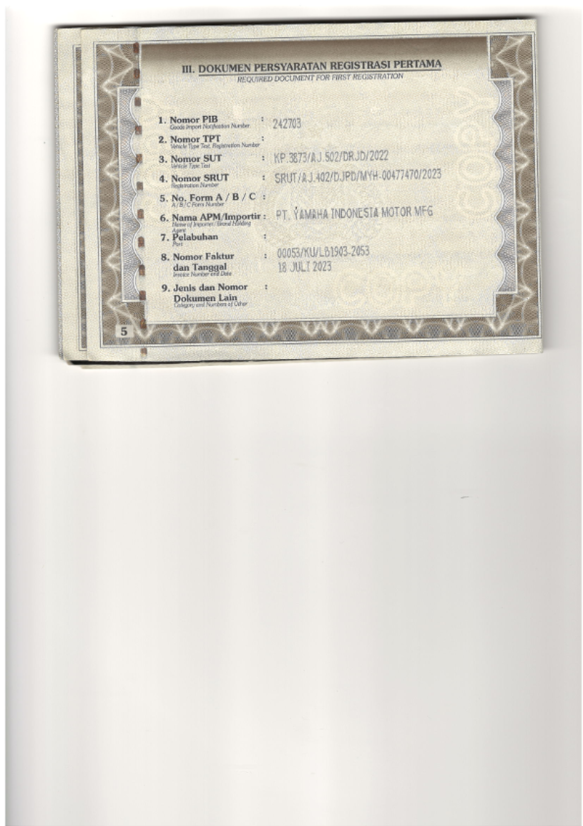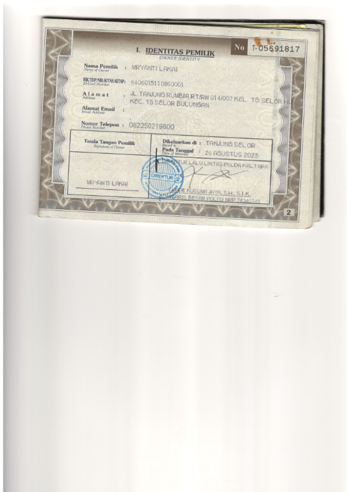 | KWT Blangko | : | Tidak Ada |