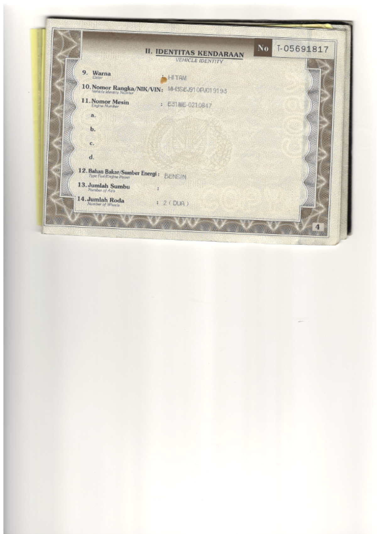 | No. Mesin | : | E31WE0210847 |