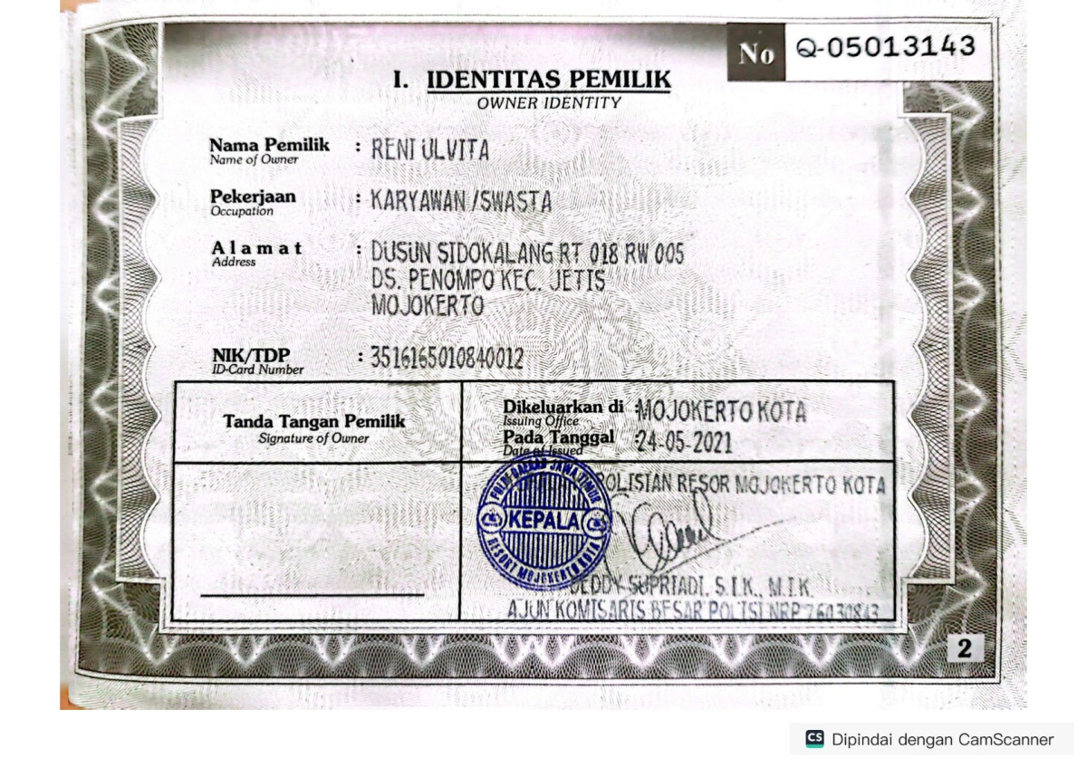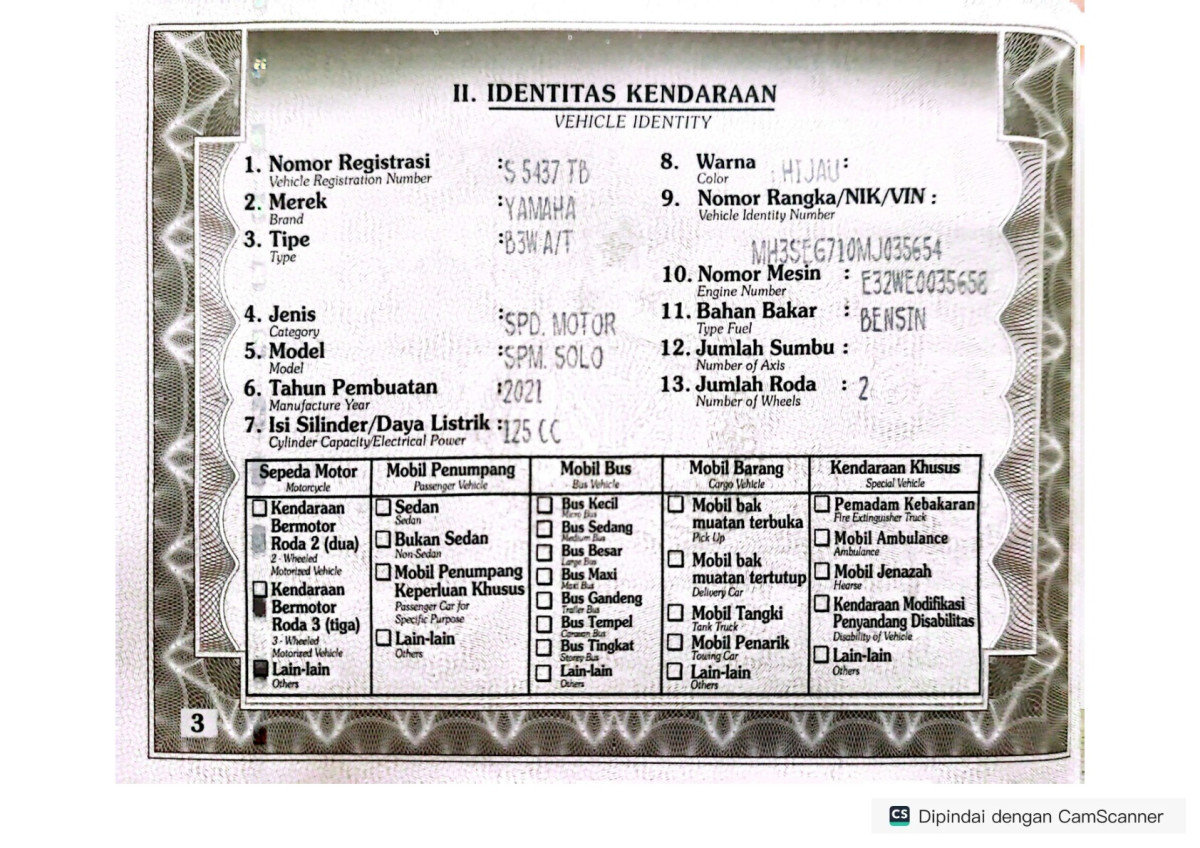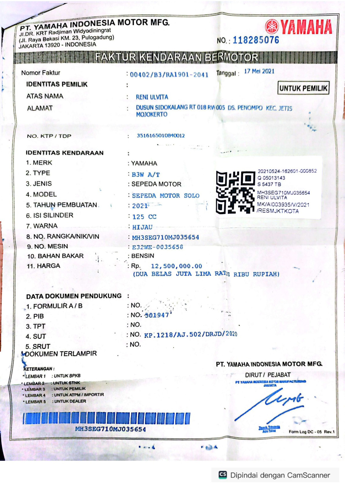 | No. Rangka | : | MH3SEG710MJ035654 |