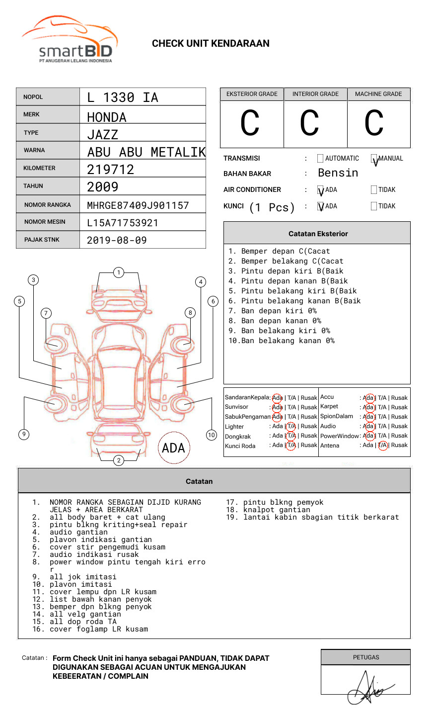 SEBELUM MELAKUKAN PENAWARAN HARAP CEK KONDISI UNIT SERTA DOKUMEN TERLEBIH DAHULU// UNIT DIKENAKAN BIAYA PPN 1,1% DARI HARGA TERBENTUK// PIC TOYIB : 081332024730
