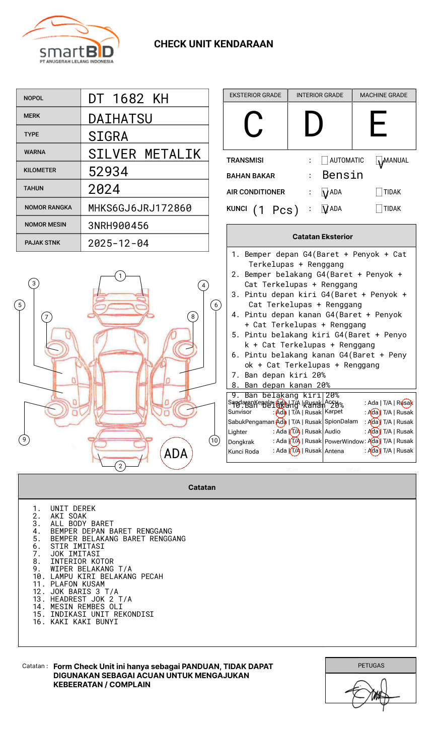 SEBELUM MELAKUKAN PENAWARAN UNIT PESERTA LELANG WAJIB MELAKUKAN PENGECEKAN UNIT DAN DOKUMEN TERLEBIH DAHULU // PIC AHMAD 082345278181 IKRAM 085241587738 // UNIT DIKENAKAN BIAYA PPN 1.1% DARI HARGA TERBENTUK //
