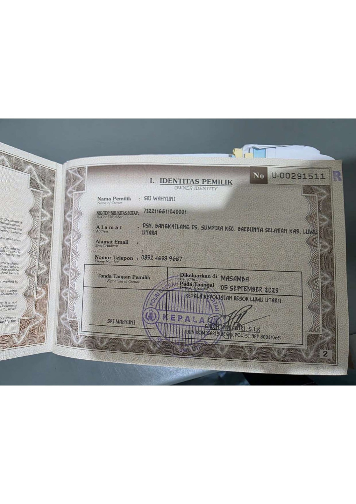 | KWT Blangko | : | Tidak Ada |