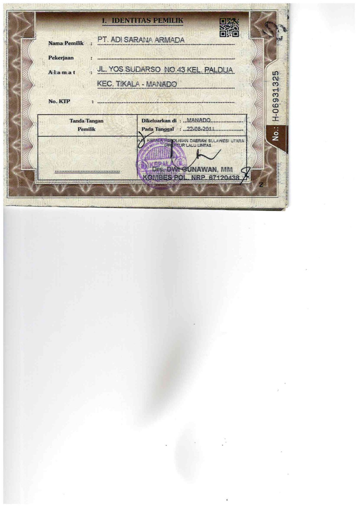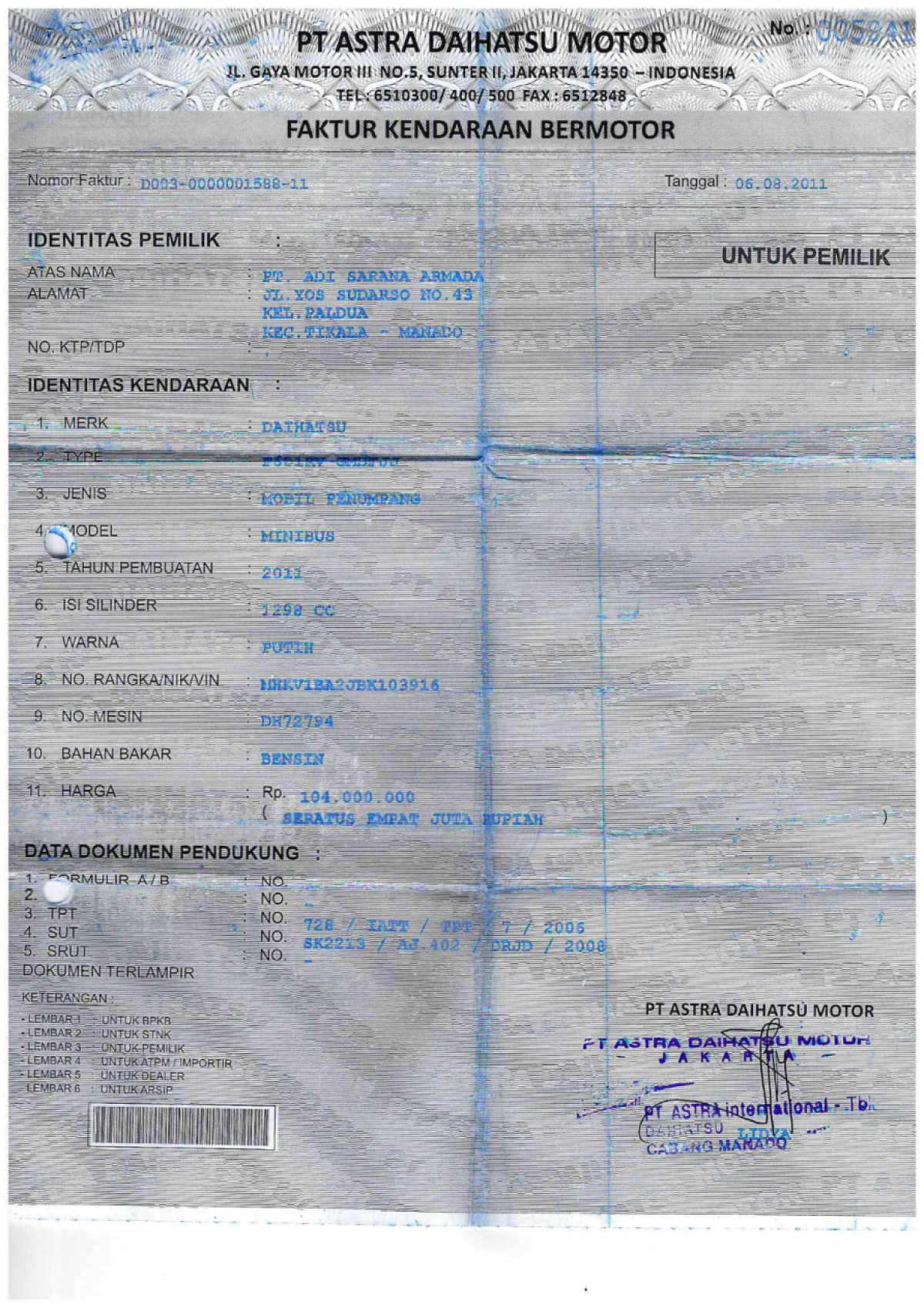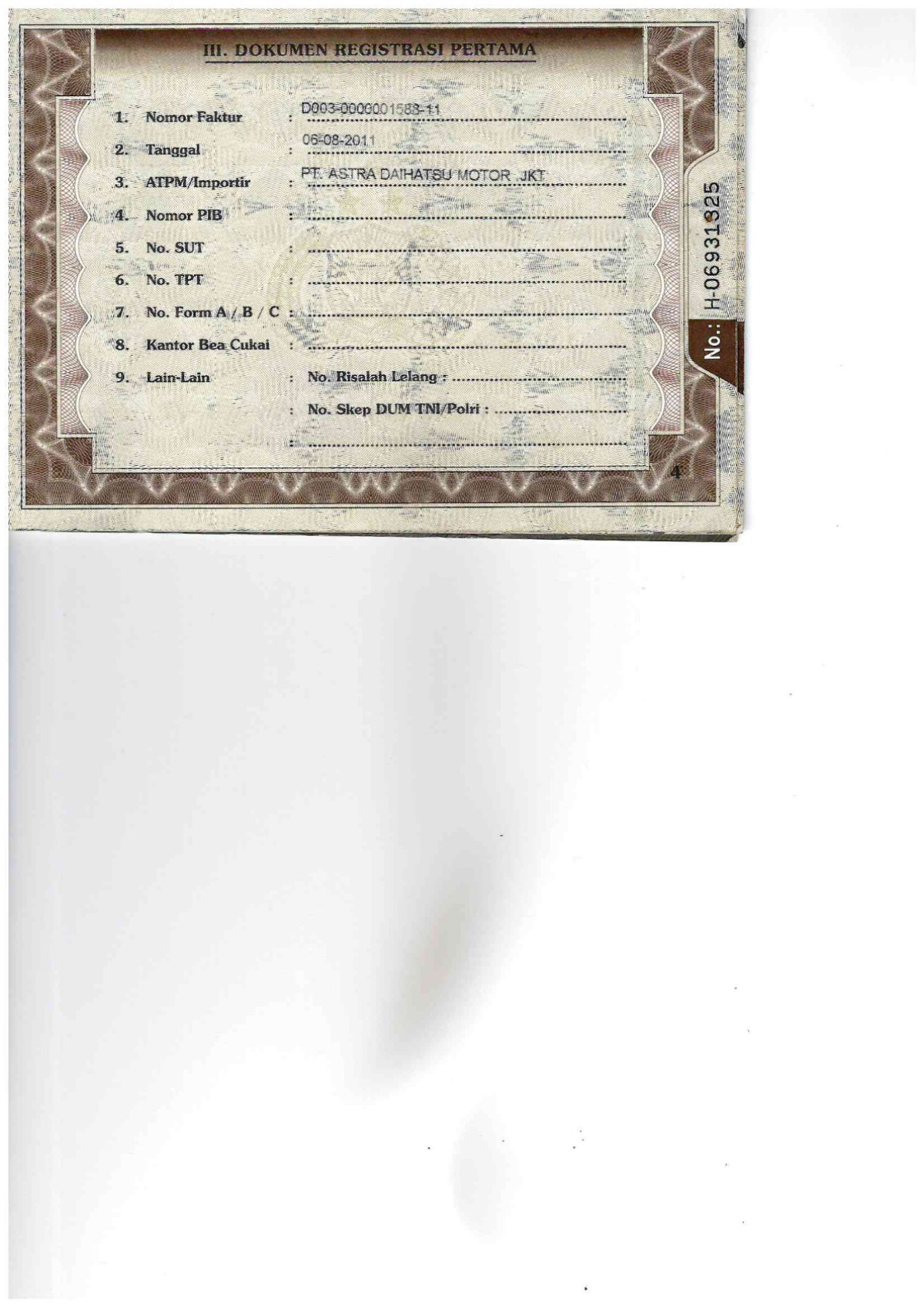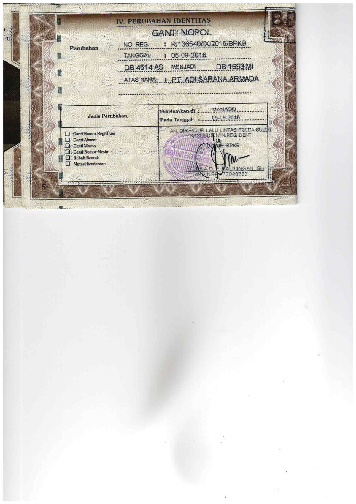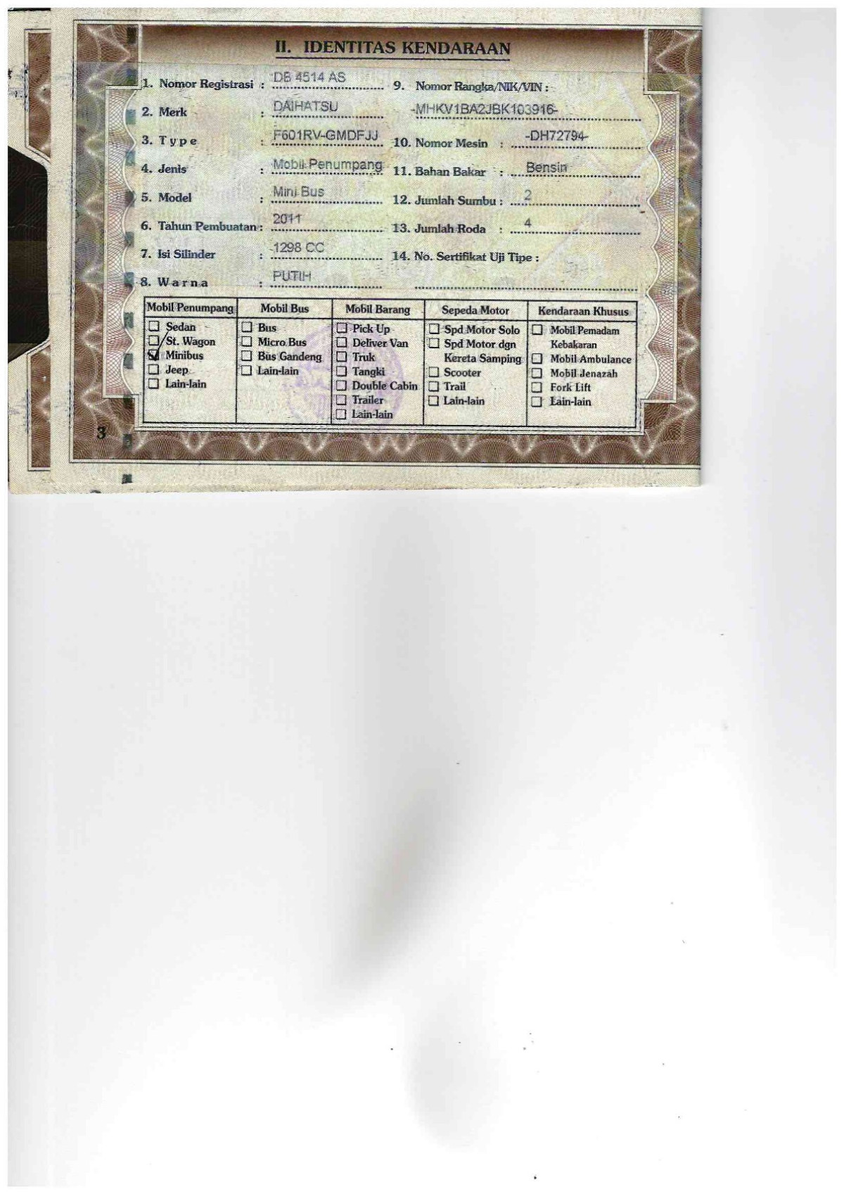 ADA PERBEDAAN NOPOL PADA FISIK DM 1156 AA SEDANGKAN PADA BPKB DB 1693 MI TIDAK ADA KET, RUBAH NOPOL INDIKASI BBN FANTUNG / NOPOL PALSU // SEBELUM MELAKUKAN PENAWARAN UNIT PESERTA LELANG WAJIB MELAKUKAN PENGECEKAN UNIT DAN DOKUMEN TERLEBIH DAHULU // PIC HAKIM +62 852-4141-5636 // UNIT DIKENAKAN BIAYA PPN 1.1% DARI HARGA TERBENTUK //