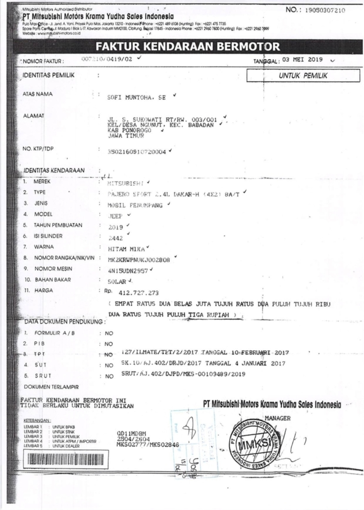 | No. Rangka | : | MK2KRWPNUKJ002808 |