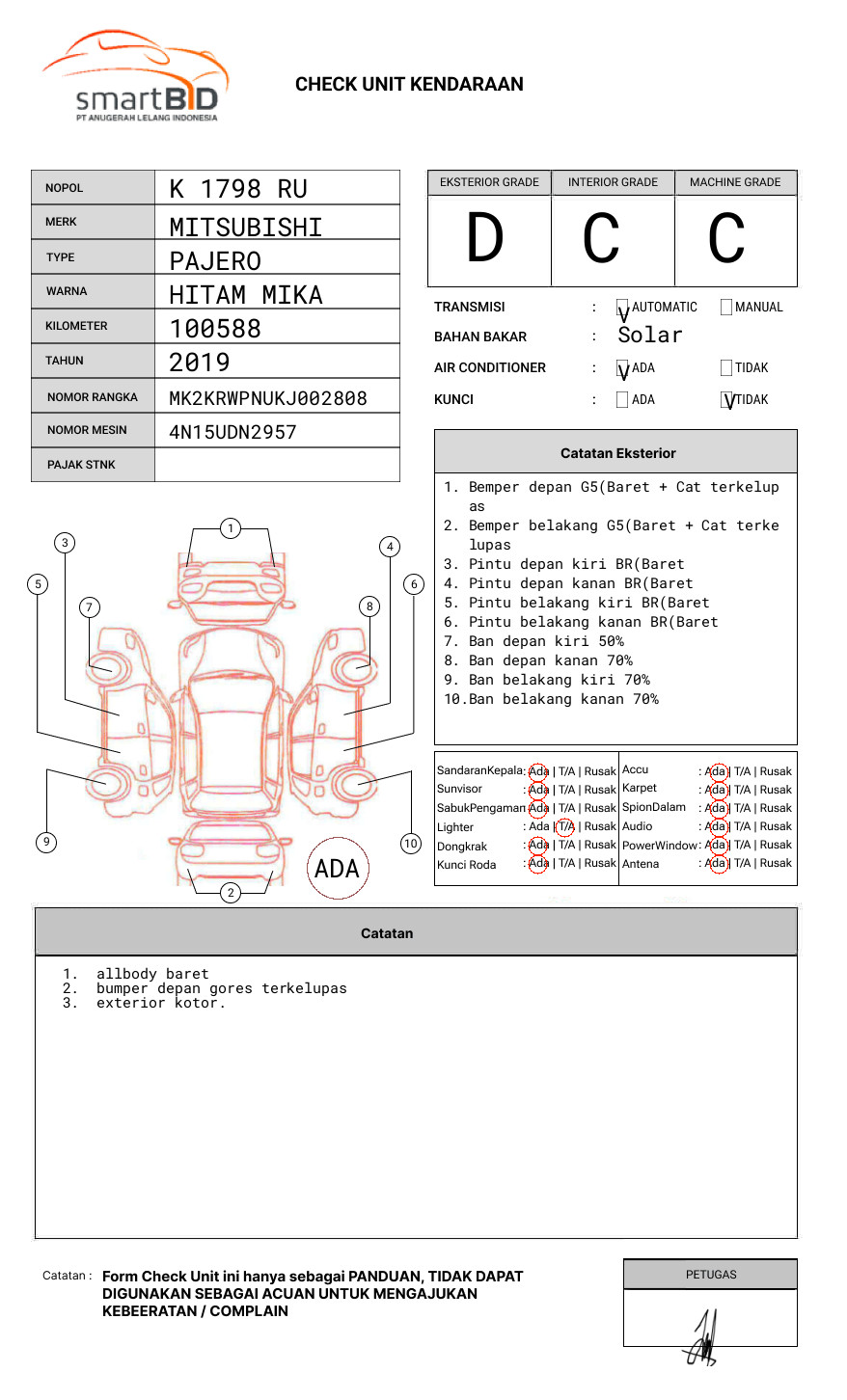 SEBELUM MELAKUKAN PENAWARAN UNIT PESERTA LELANG WAJIB MELAKUKAN PENGECEKAN UNIT DAN DOKUMEN TERLEBIH DAHULU // JHOE +62 878-6315-2679 / RIDHO 0899-1384-240 // UNIT DIKENAKAN BIAYA PPN 1.1% DARI HARGA TERBENTUK // ADA PERBEDAAN PENULISAN BAHAN BAKAR PADA FISIK DAN FAKTUR SOLAR PADA BPKB BENSIN // NOPOL FISIK T/A