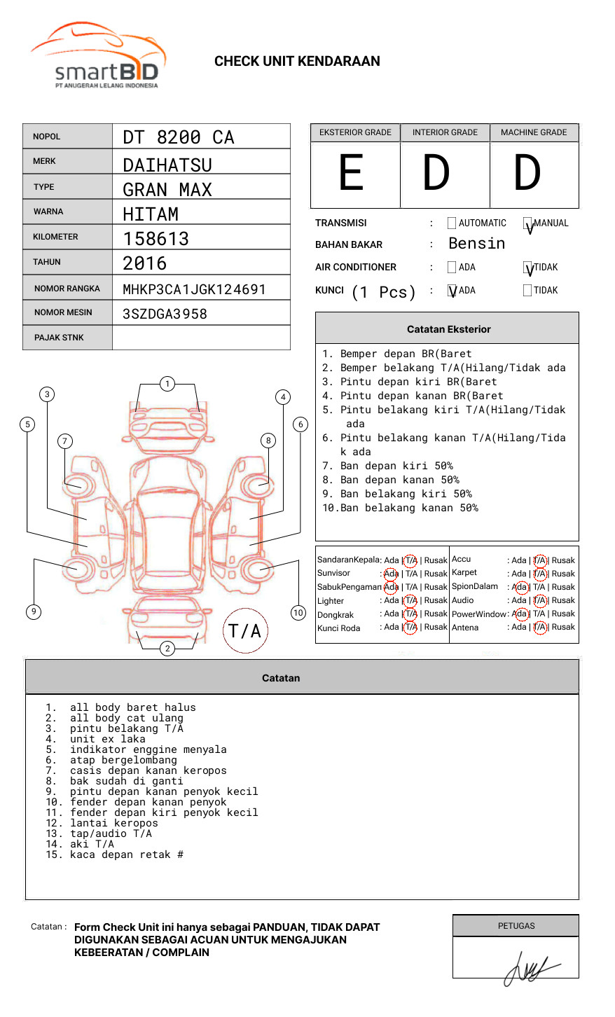 SEBELUM MELAKUKAN PENAWARAN UNIT PESERTA LELANG WAJIB MELAKUKAN PENGECEKAN UNIT DAN DOKUMEN TERLEBIH DAHULU // PIC LULU +62 856-5712-5589 // NOMOR MESIN INDIKASI TEMPELAN //