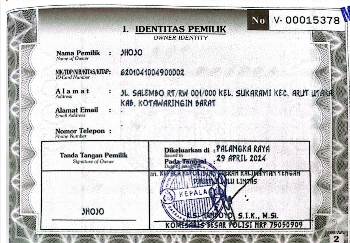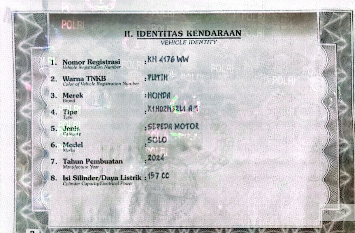 | No. Polisi | : | KH 4176 WW |