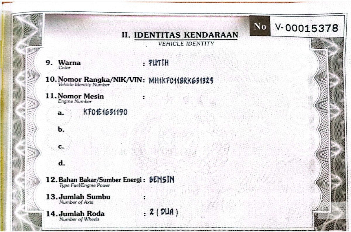 | STNK | : | Ada |