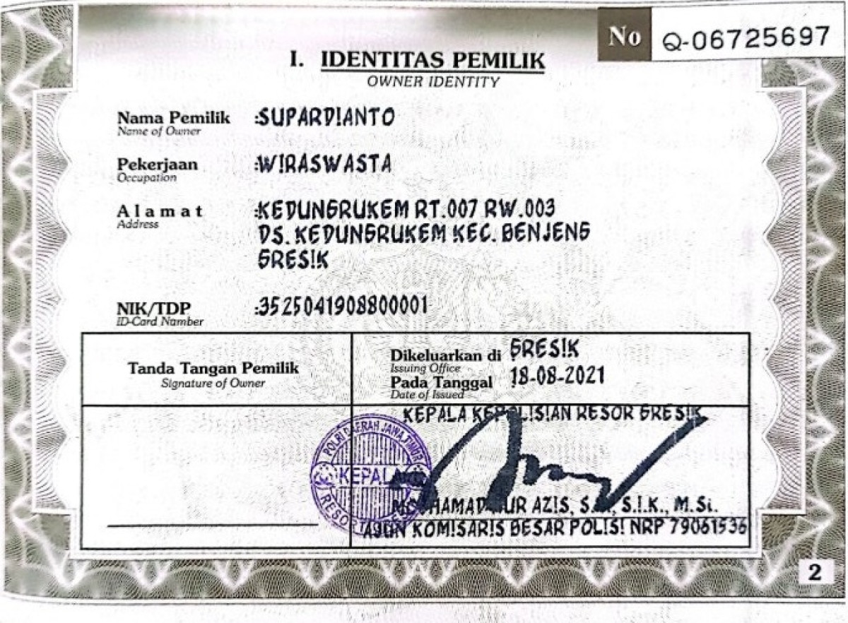 | No. Polisi | : | W 1990 BF |