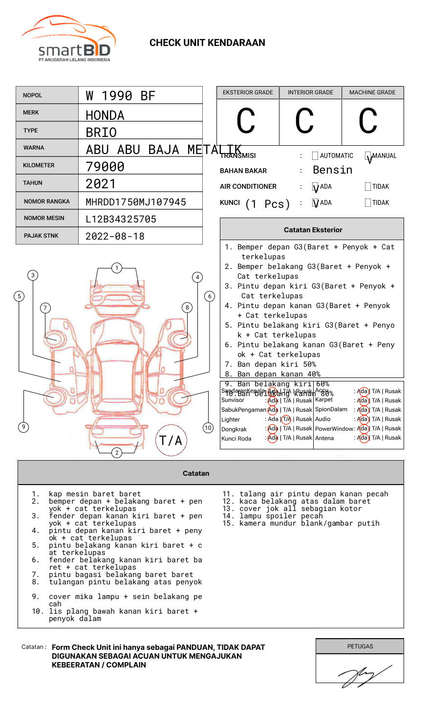 SEBELUM MELAKUKAN PENAWARAN UNIT PESERTA LELANG WAJIB MELAKUKAN PENGECEKAN UNIT DAN DOKUMEN TERLEBIH DAHULU // PEMENANG LELANG DIKENAKAN BIAYA PPN 1.1% DARI HARGA TERBENTUK // PIC AWAL +62 895-3231-57272 / ANDRI 085136886212