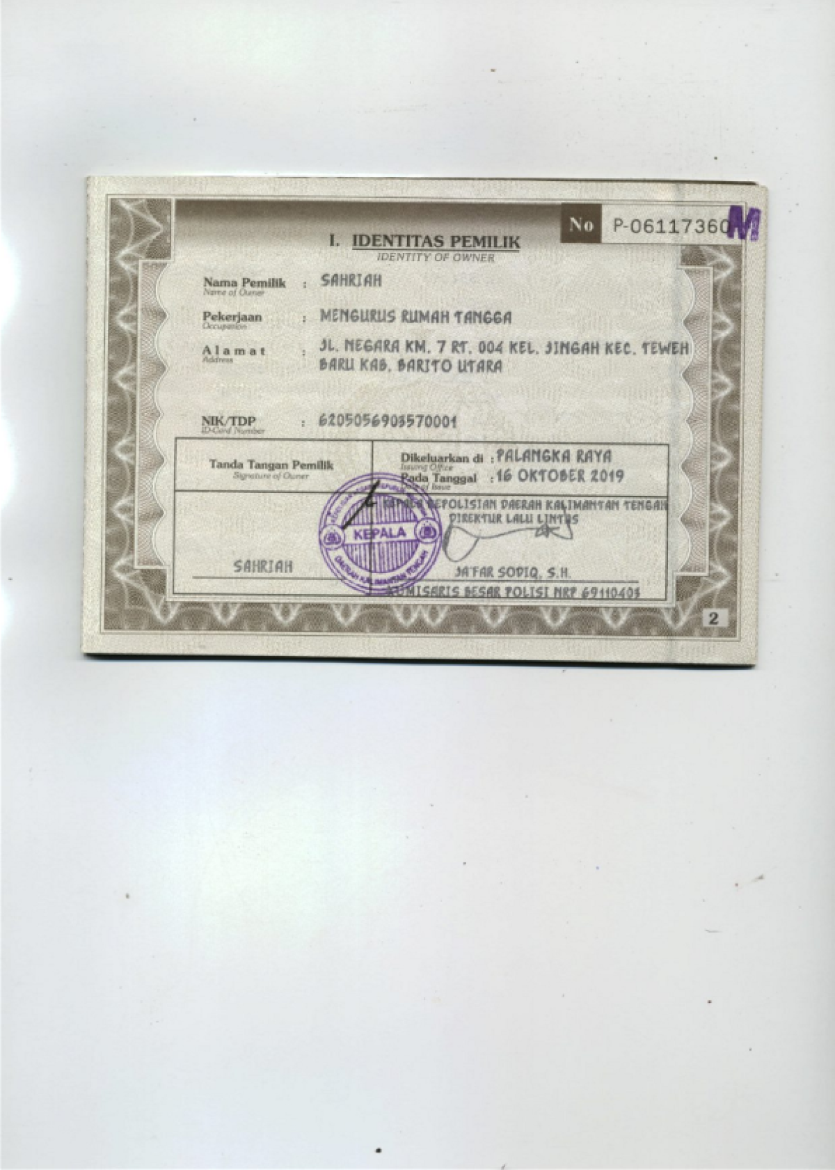 | No. Rangka | : | MHFXW42G8F2306170 |