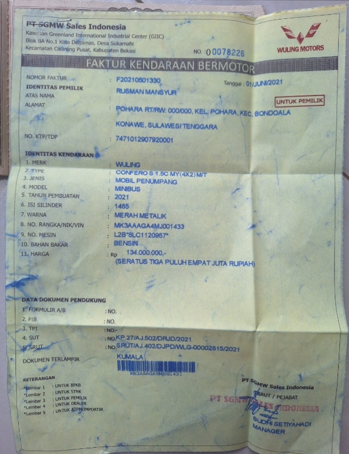 SEBELUM MELAKUKAN PENAWARAN HARAP CEK KONDISI UNIT SERTA DOKUMEN TERLEBIH DAHULU// UNIT TIDAK DAPAT DILAKUKAN CEK E-SAMSAT (PENAWAR WAJIB MENGECEK TERLEBIH DAHULU)// NOSIN FISIK BERKARAT// PIC MAS UD : 081213061687