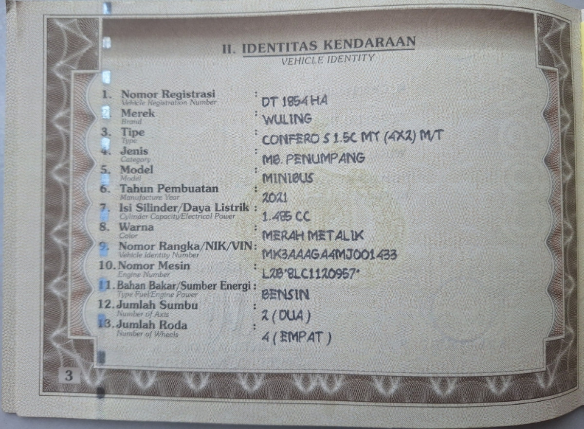 | No. Rangka | : | MK3AAAGA4MJ001433 |
