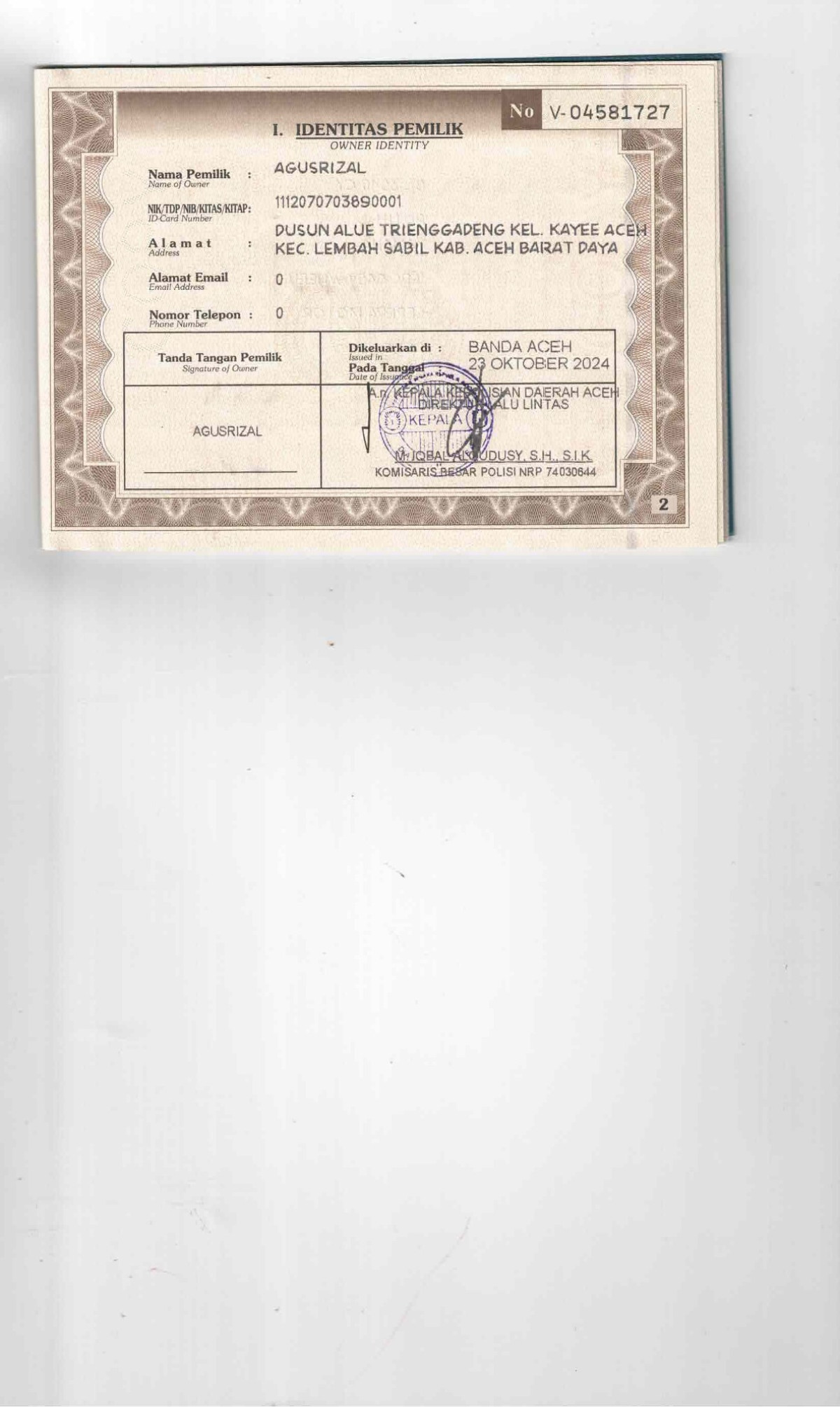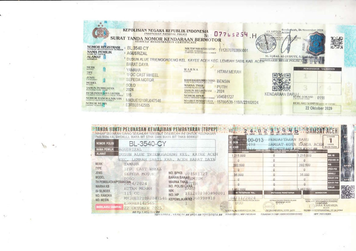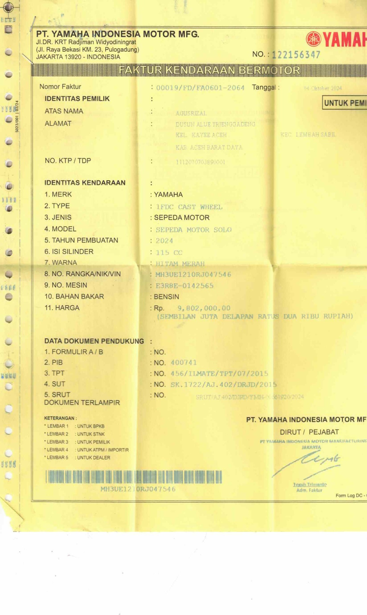 | No. Rangka | : | MH3UE1210RJ047546 |