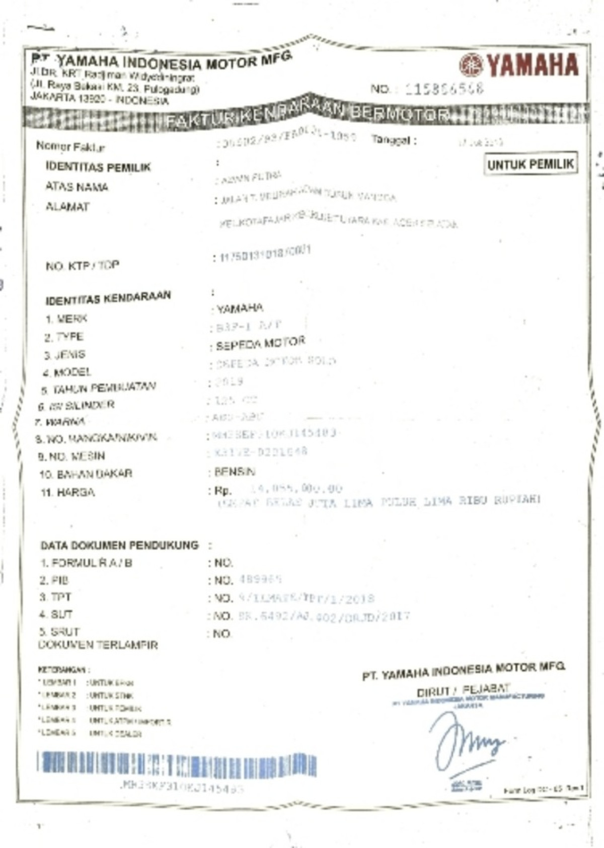 | No. Rangka | : | MH3SEF310KJ145483 |