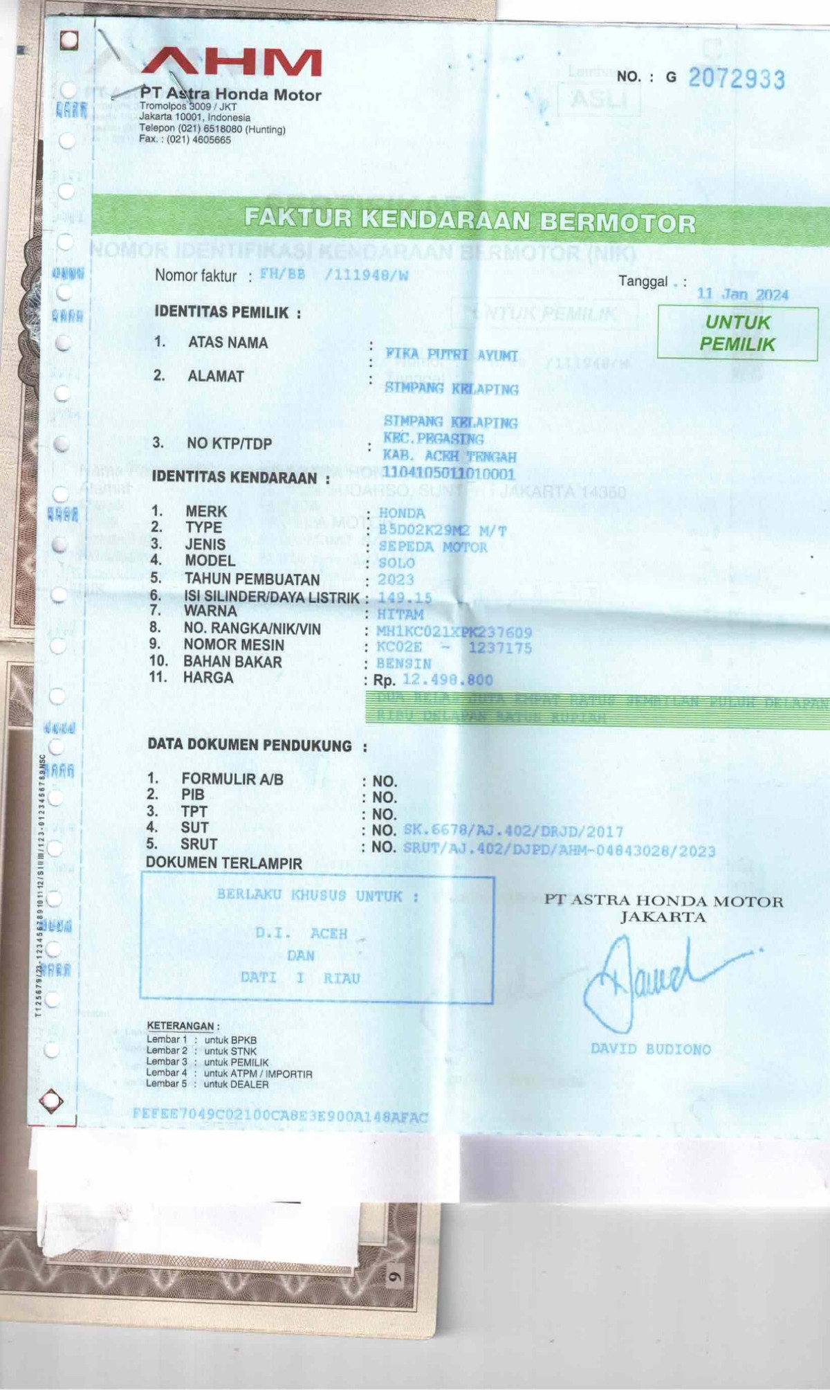 MESIN HIDUP, KILOMETER TIDAK ADA, SPION TIDAK ADA, SHOCK BOCOR, BODY TIDAK ADA// UNIT TIDAK DILAKUKAN PENGECEKAN OLEH TIM SMARTBID// SEBELUM MELAKUKAN PENAWARAN HARAP CEK KONDISI UNIT DAN DOKUMEN TERLEBIH DAHULU// WAJIB MENGHUBUNGI PIC DAN DATANG KE LOKASI UNTUK PENGECEKAN UNIT// UNIT DILELANG APA ADANYA PERMASALAHAN YANG TIMBUL DILUAR TANGGUNG JAWAB SMARTBID// JIKA INGIN MENGAMBIL UNIT HARAP UNTUK KONFIRMASI DAHULU KE SMARTBID // JIKA YANG MENGAMBIL BIDDER HARAP MEMBAWA KTP ASLI// PENGAMBILAN UNIT H+2 HARI KERJA SETELAH PELUNASAN//