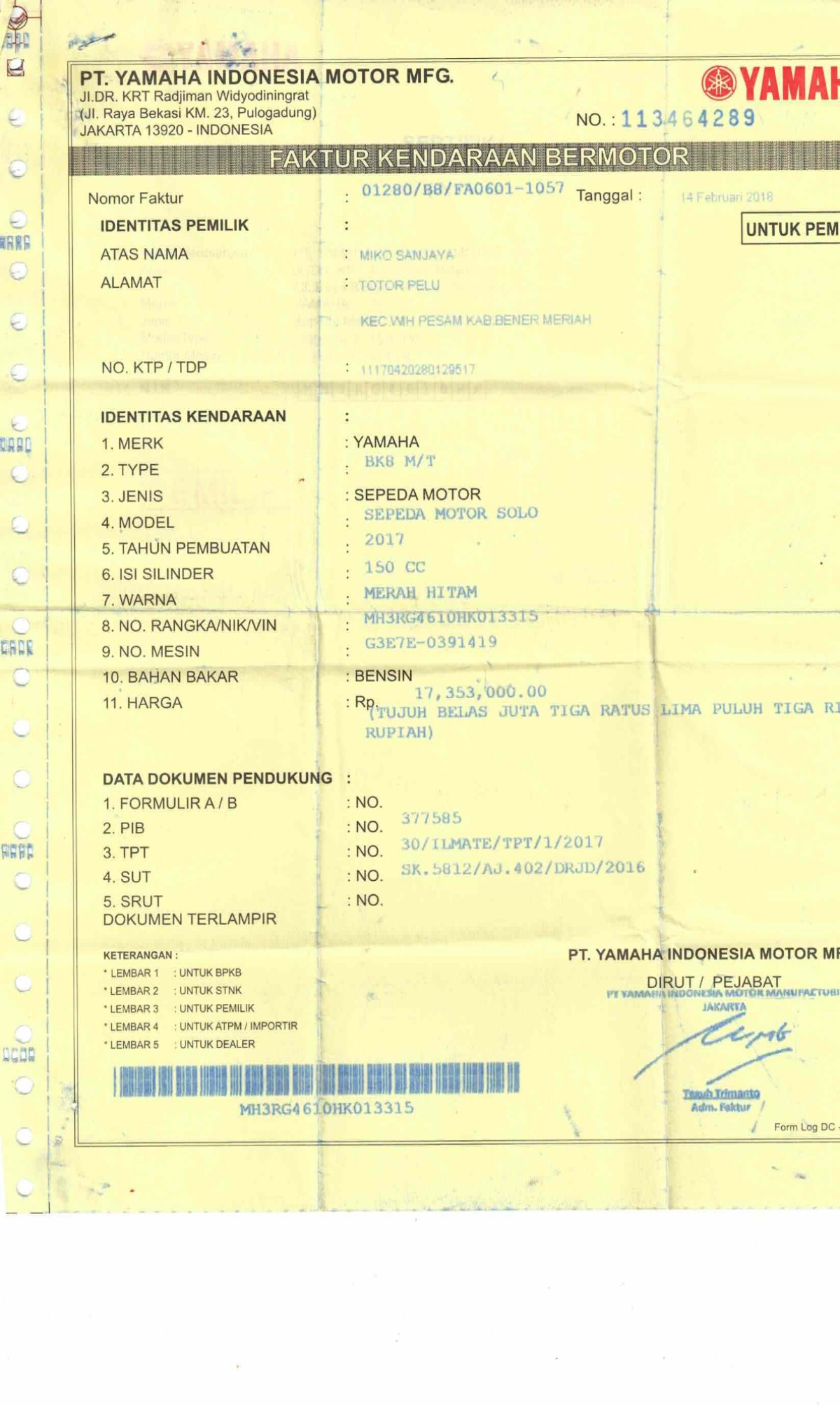 NOPOL FISIK T/A // MESIN HIDUP KASAR, JOK KOYAK, SPION TIDAK ADA// UNIT TIDAK DILAKUKAN PENGECEKAN OLEH TIM SMARTBID// SEBELUM MELAKUKAN PENAWARAN HARAP CEK KONDISI UNIT DAN DOKUMEN TERLEBIH DAHULU// WAJIB MENGHUBUNGI PIC DAN DATANG KE LOKASI UNTUK PENGECEKAN UNIT// UNIT DILELANG APA ADANYA PERMASALAHAN YANG TIMBUL DILUAR TANGGUNG JAWAB SMARTBID// JIKA INGIN MENGAMBIL UNIT HARAP UNTUK KONFIRMASI DAHULU KE SMARTBID // JIKA YANG MENGAMBIL BIDDER HARAP MEMBAWA KTP ASLI// PENGAMBILAN UNIT H+2 HARI KERJA SETELAH PELUNASAN//