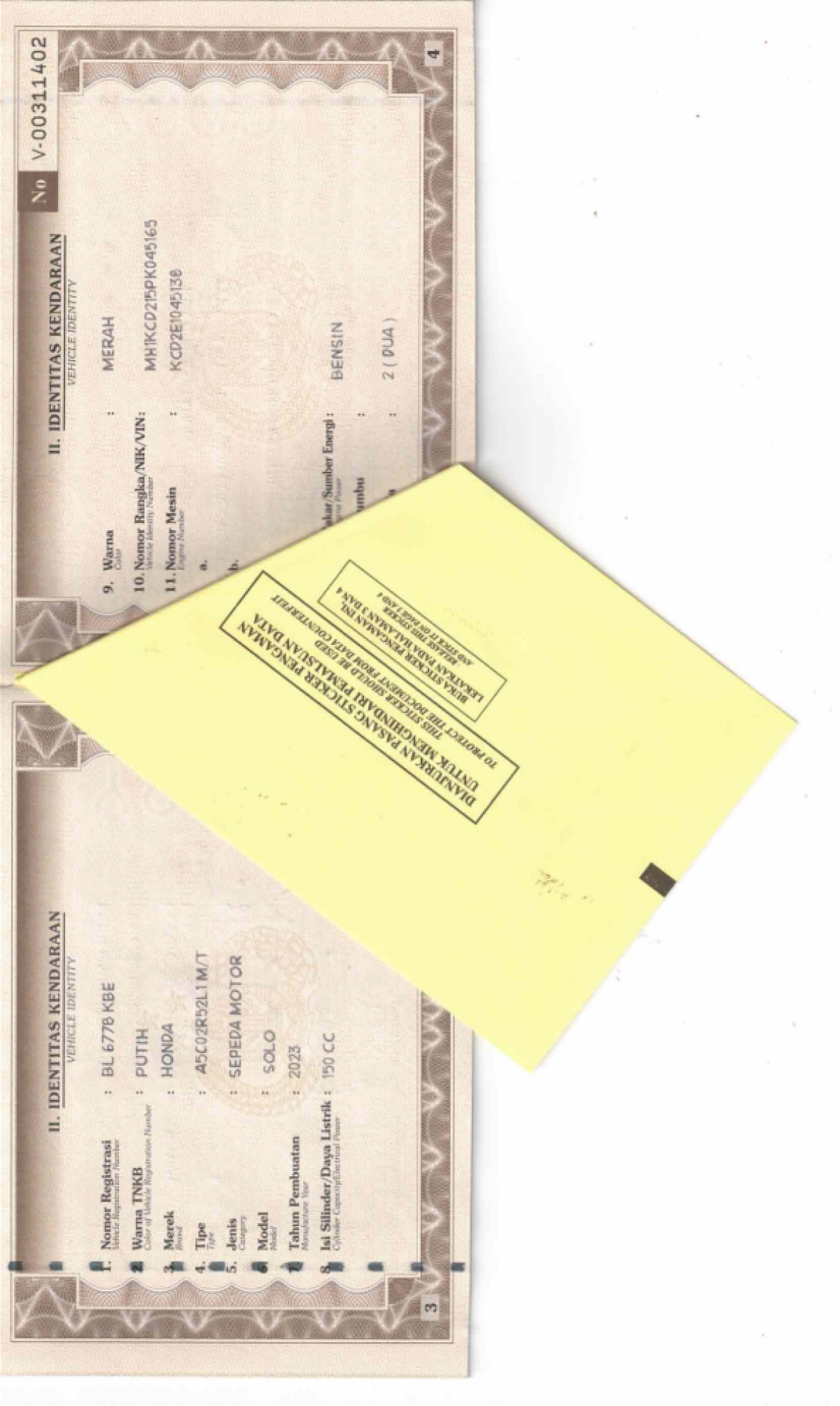 | No. Polisi | : | BL 6778 KBE |