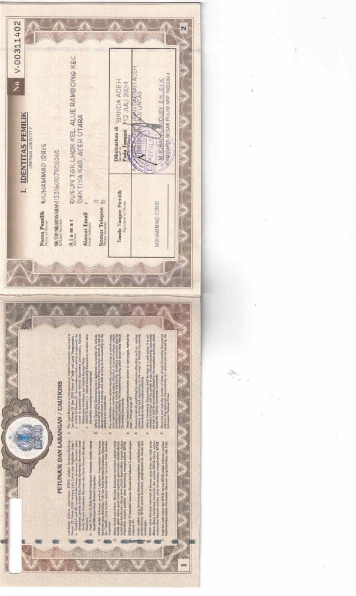 | KWT Blangko | : | Tidak Ada |