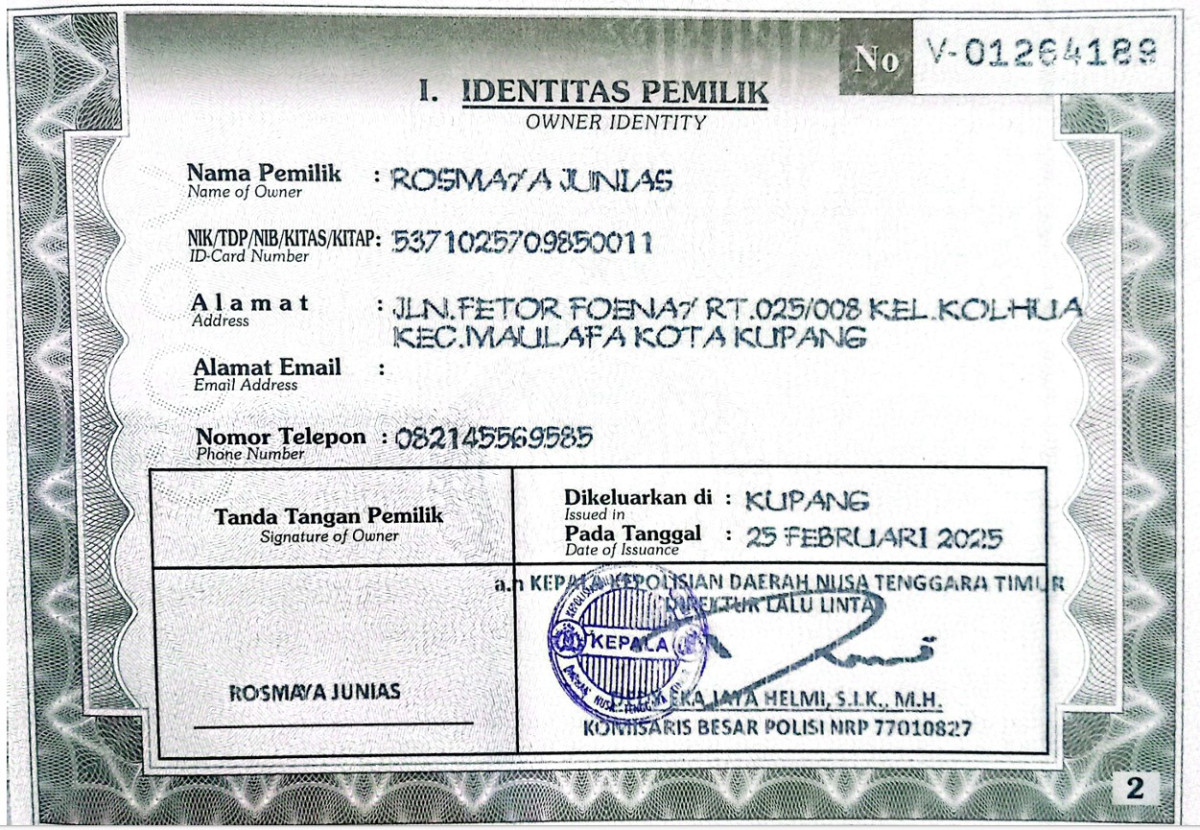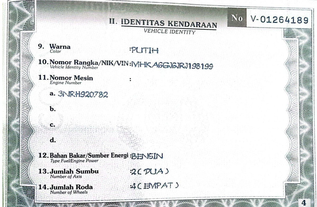 | No. Rangka | : | MHKA6GJ6JR198199 |