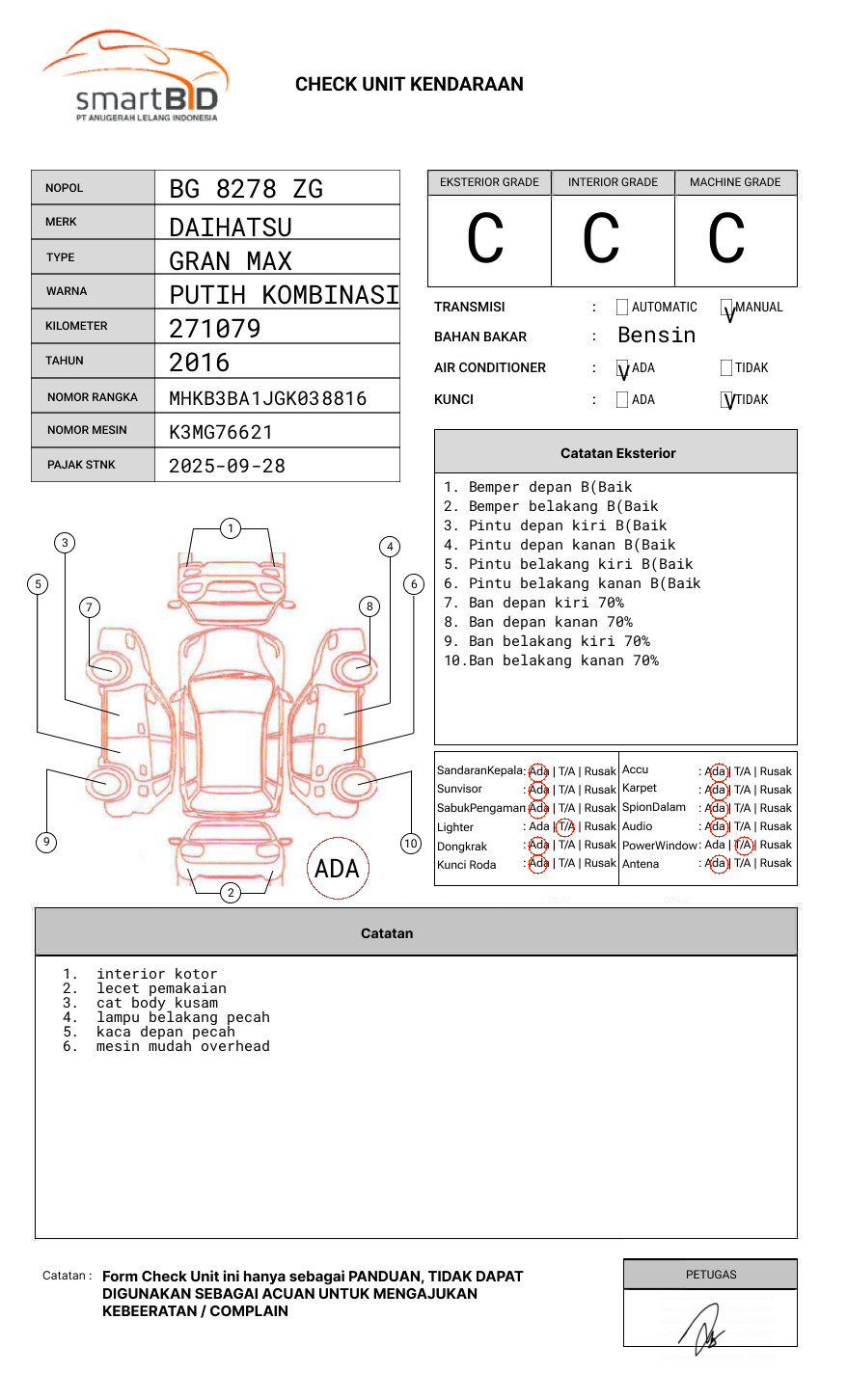 SEBELUM MELAKUKAN PENAWARAN UNIT PESERTA LELANG WAJIB MELAKUKAN PENGECEKAN UNIT DAN DOKUMEN TERLEBIH DAHULU // CHANDRA +62 813-6662-6995 /  DEDDY 082280573391 // HANYA ADA KARTU KIR