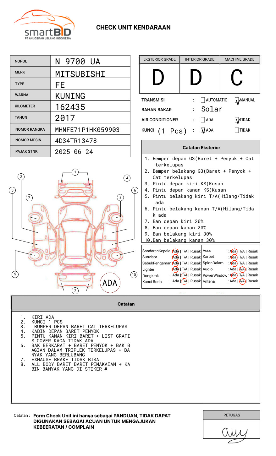 SEBELUM MELAKUKAN PENAWARAN UNIT PESERTA LELANG WAJIB MELAKUKAN PENGECEKAN UNIT DAN DOKUMEN TERLEBIH DAHULU // PIC ARDIAZ 082142028080 // UNIT DIKENAKAN BIAYA PPN 1.1% DARI HARGA TERBENTUK //