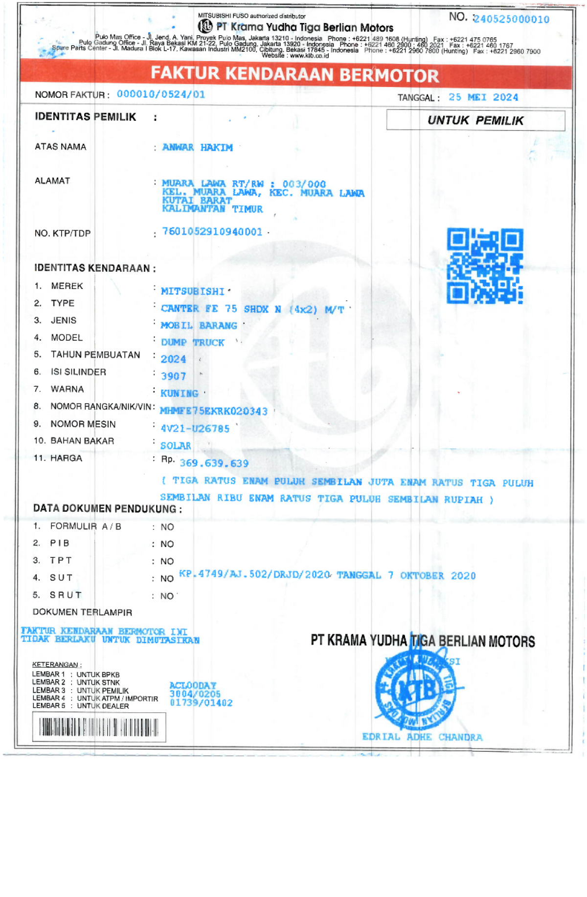 | No. Rangka | : | MHMFE75EKRK020343 |