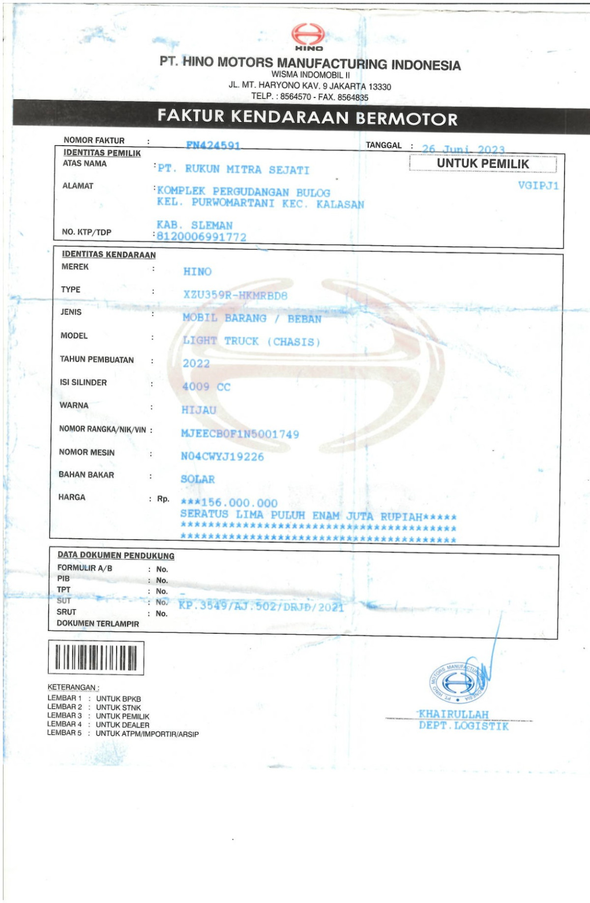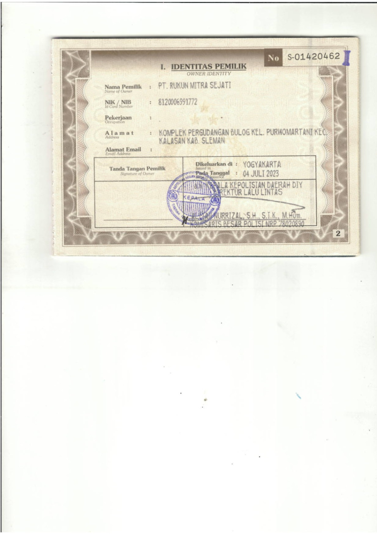 | KWT Blangko | : | Tidak Ada |