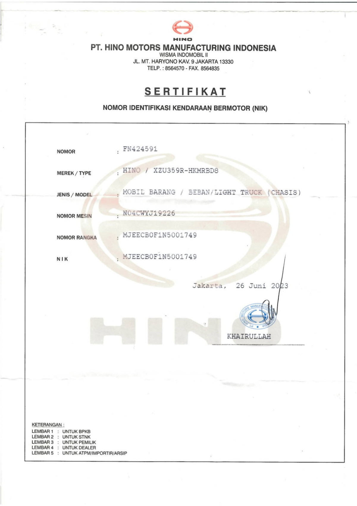 | Merk | : | HINO |