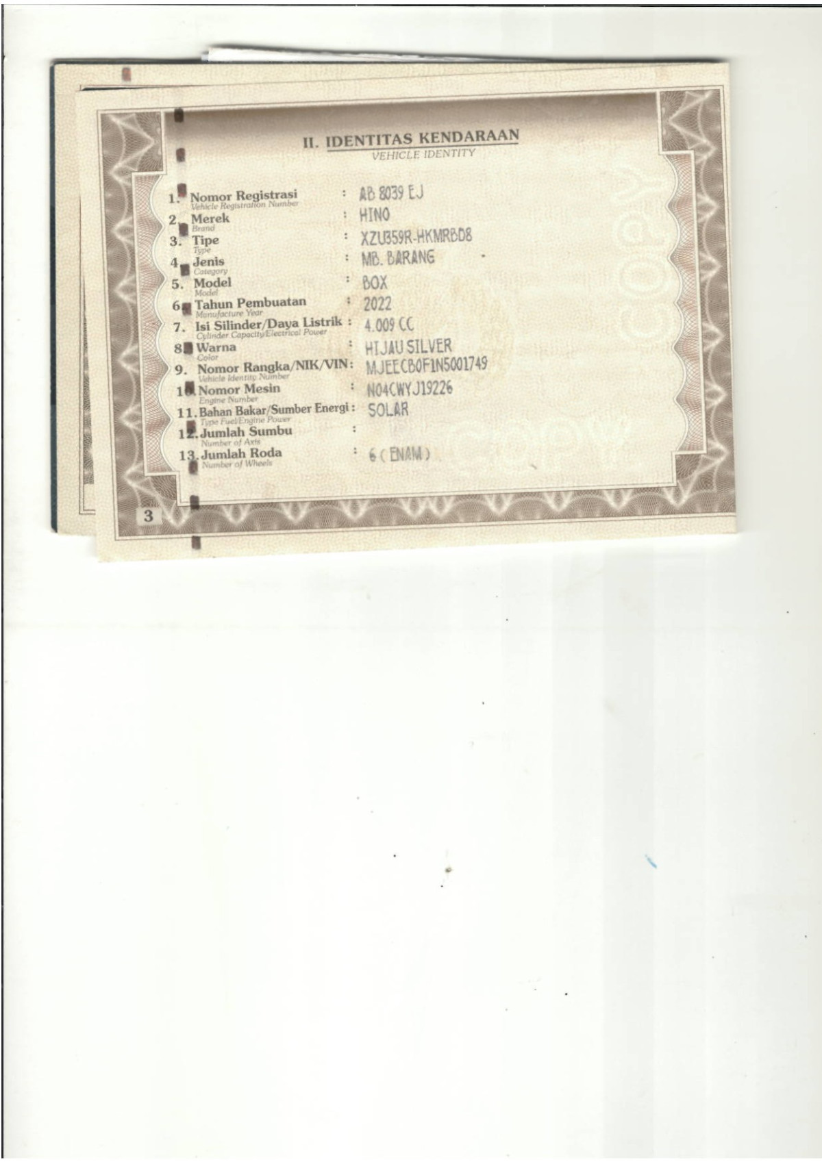 | No. Polisi | : | AB 8039 EJ |