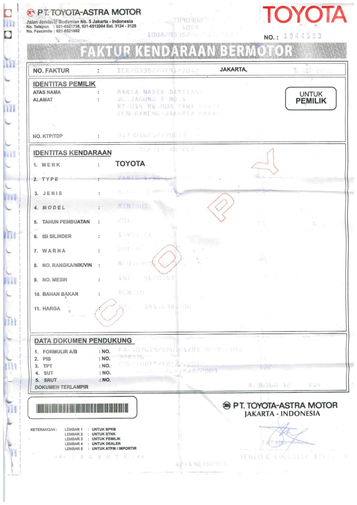 | No. Polisi | : | B 1686 NYC |