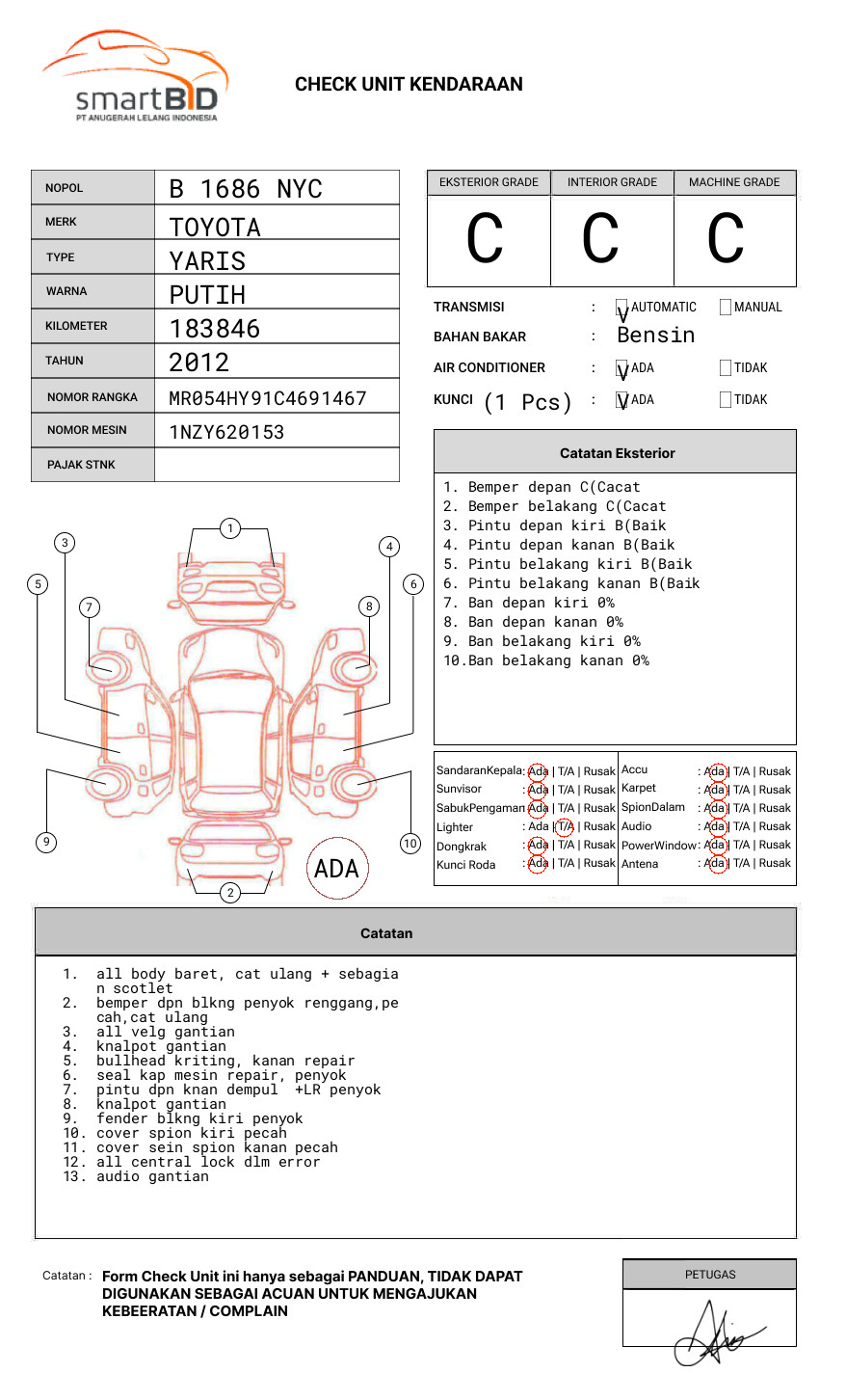 SEBELUM MELAKUKAN PENAWARAN UNIT PESERTA LELANG WAJIB MELAKUKAN PENGECEKAN UNIT DAN DOKUMEN TERLEBIH DAHULU // PIC TOYIB +62 813-3202-4730 // UNIT DIKENAKAN BIAYA PPN 1.1% DARI HARGA TERBENTUK //