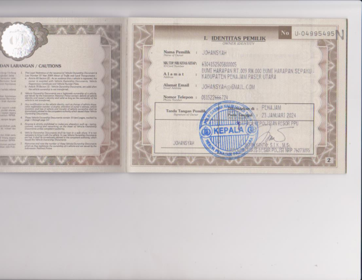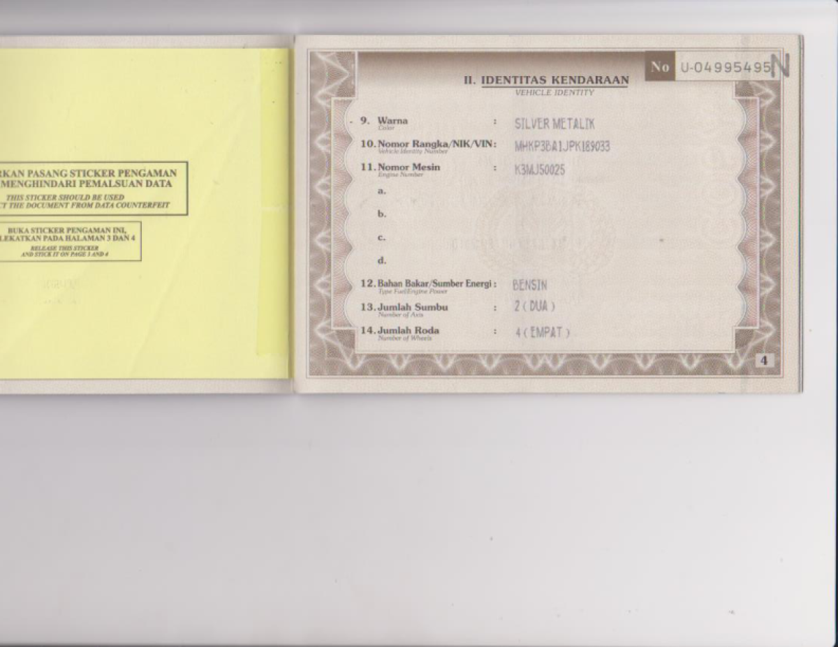 | No. Rangka | : | MHKP3BA1JPK189033 |