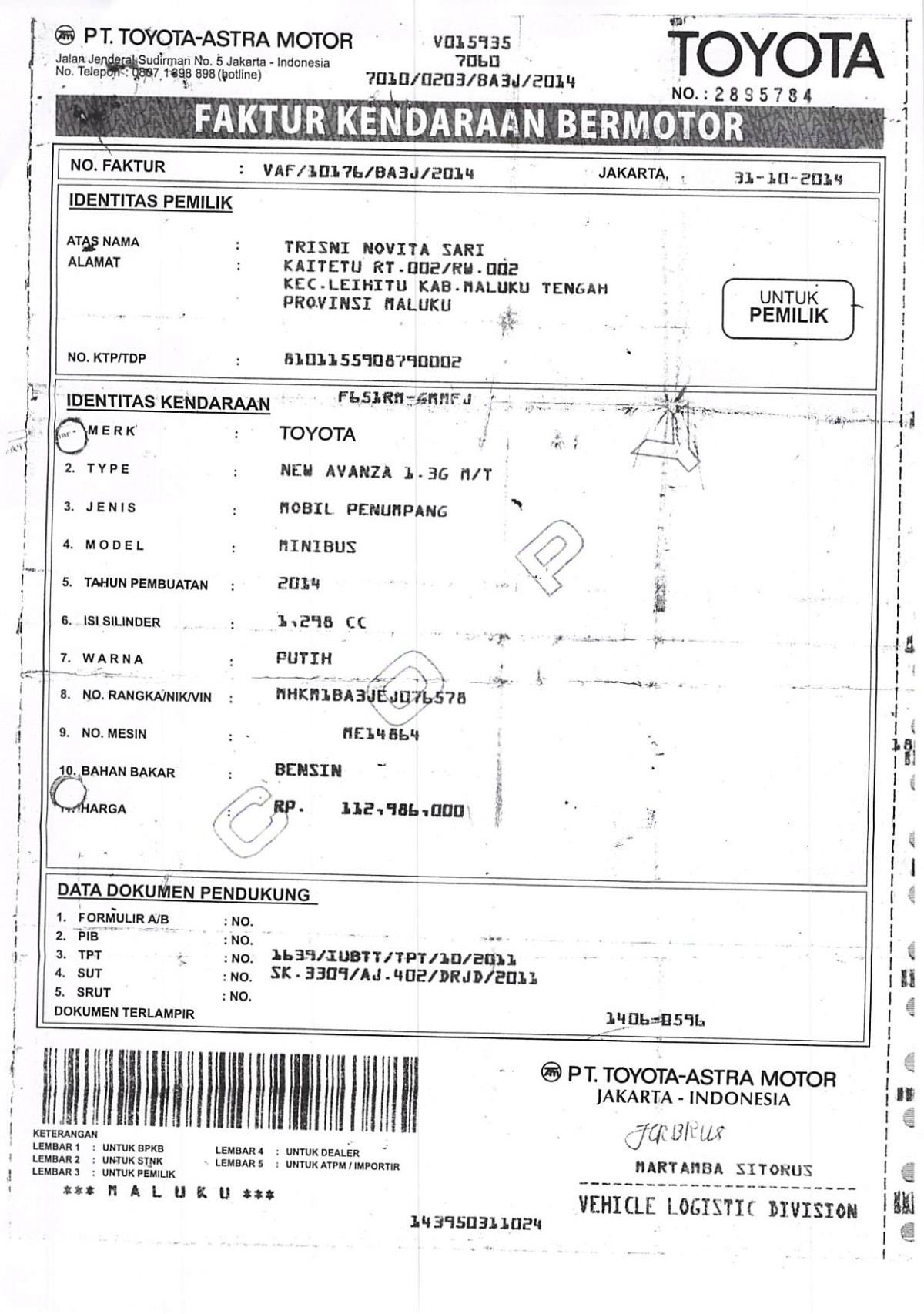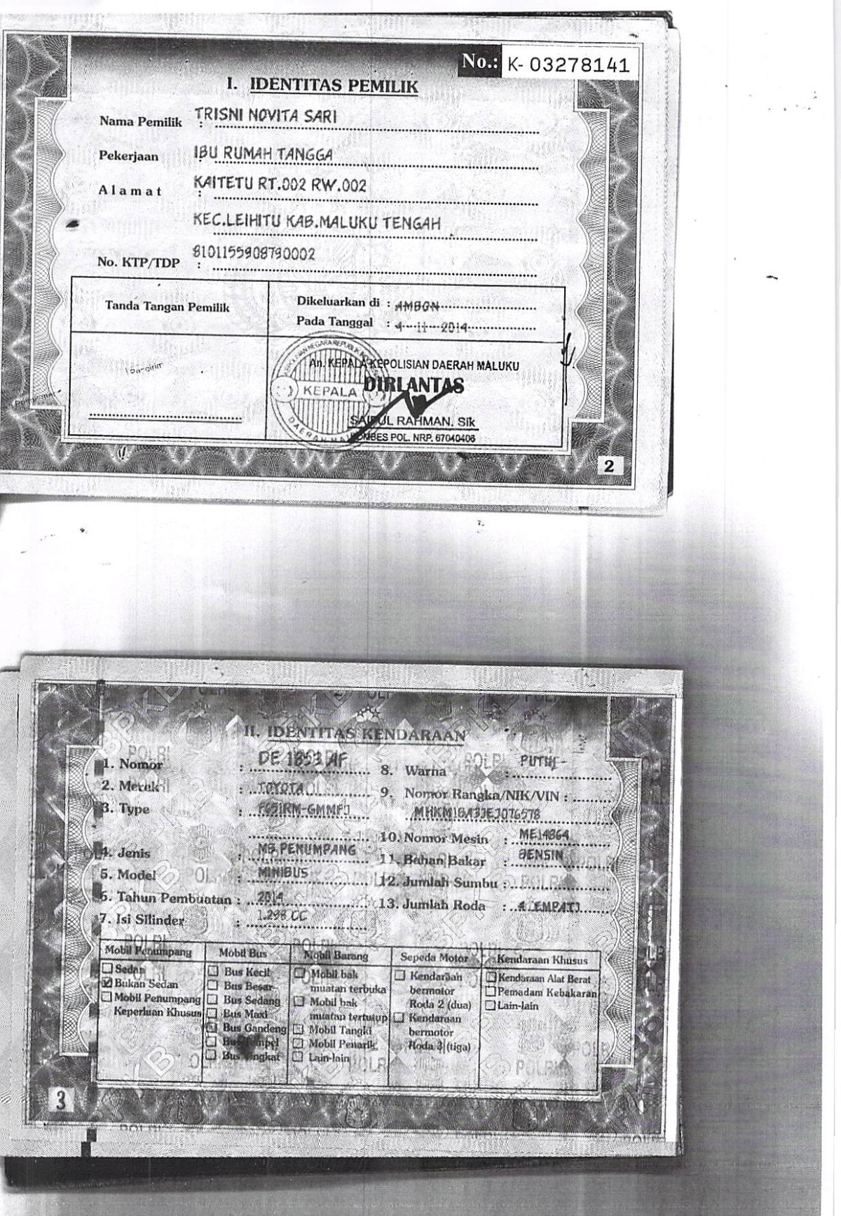 | KWT Blangko | : | Tidak Ada |