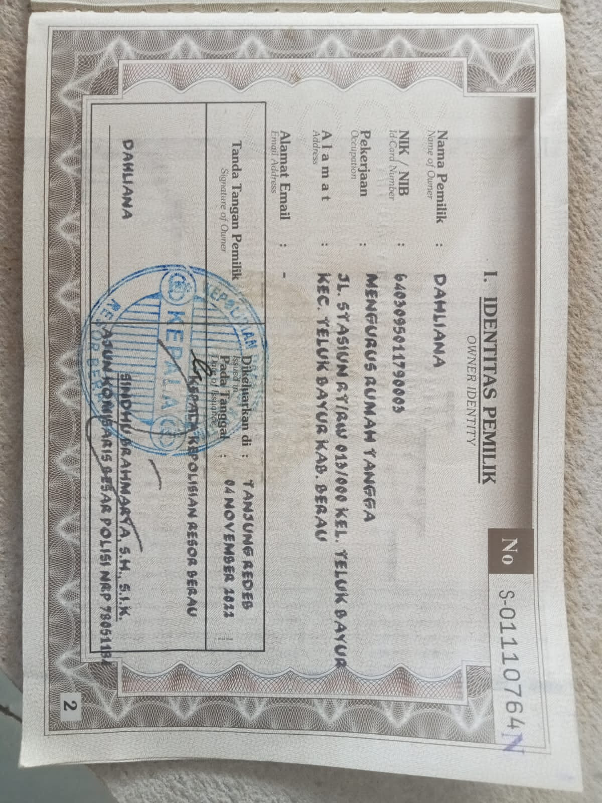 | KWT Blangko | : | Tidak Ada |