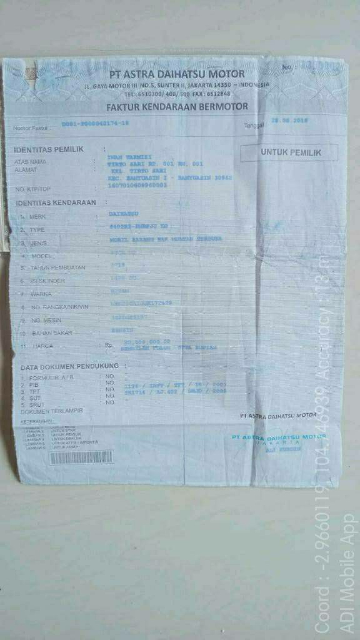 | KWT Blangko | : | Tidak Ada |