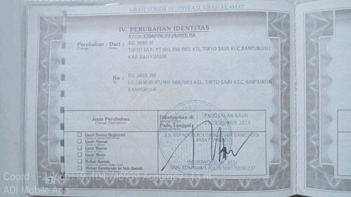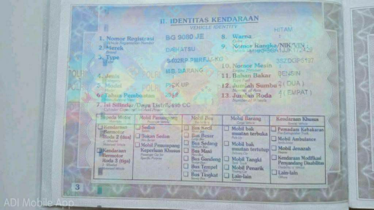 | No. Polisi | : | BG 8465 JM |