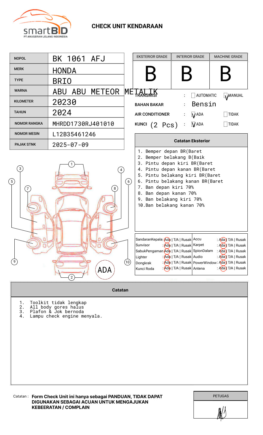 SEBELUM MELAKUKAN PENAWARAN UNIT PESERTA LELANG WAJIB MELAKUKAN PENGECEKAN UNIT DAN DOKUMEN TERLEBIH DAHULU // PIC GERMAN : 0812-6517-3060  // UNIT DIKENAKAN BIAYA PPN 1.1% DARI HARGA TERBENTUK //  UNIT DIKENAKAN BIAYA ROYA FIDUSIA 100.000