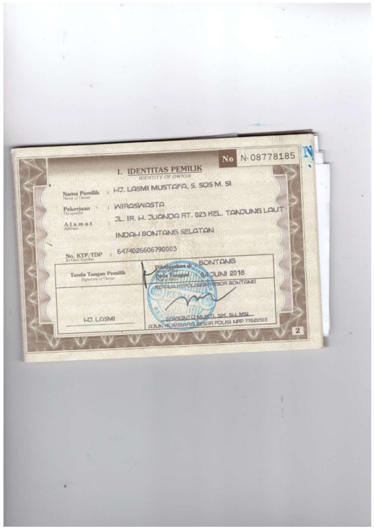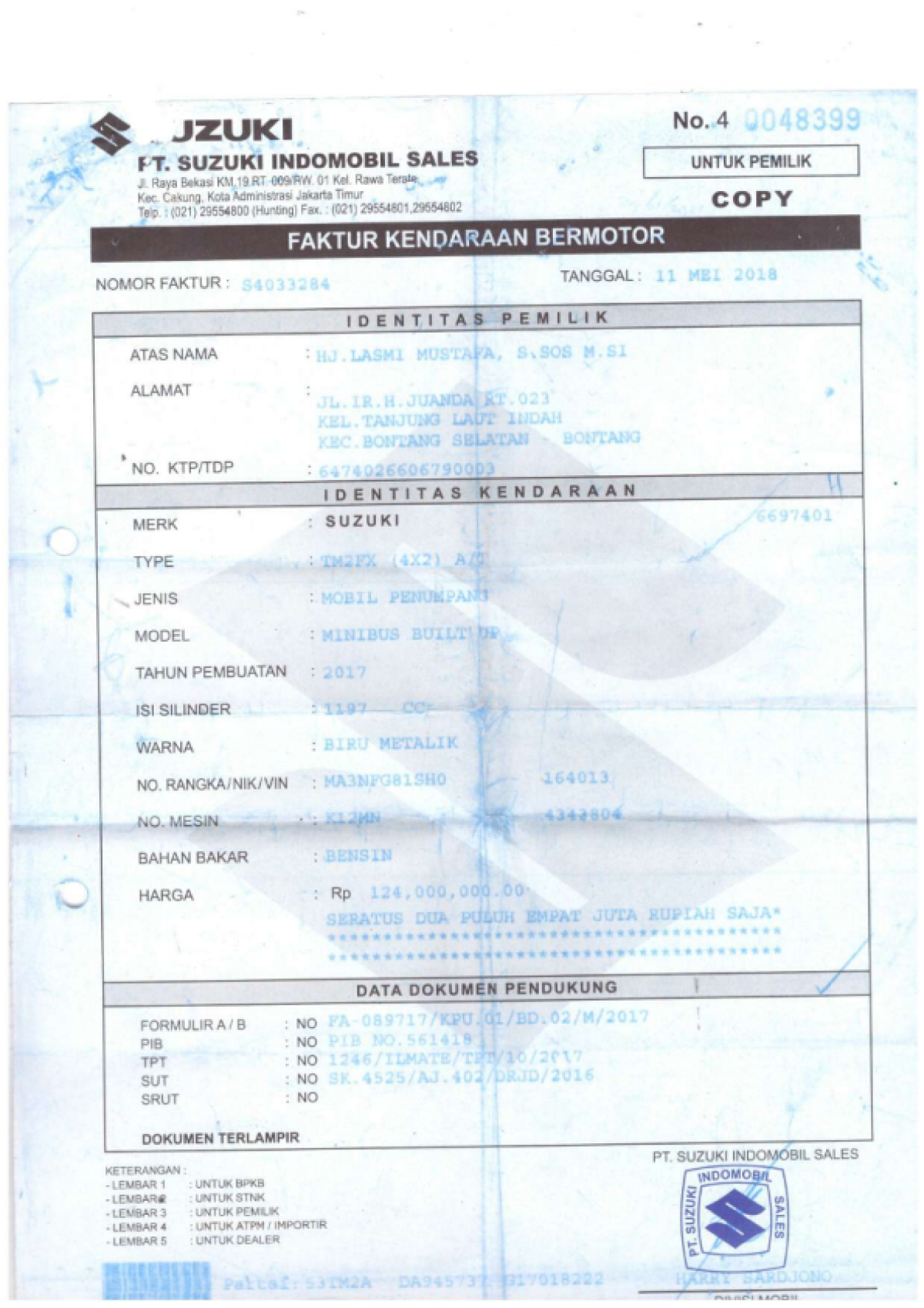 | KWT Blangko | : | Tidak Ada |
