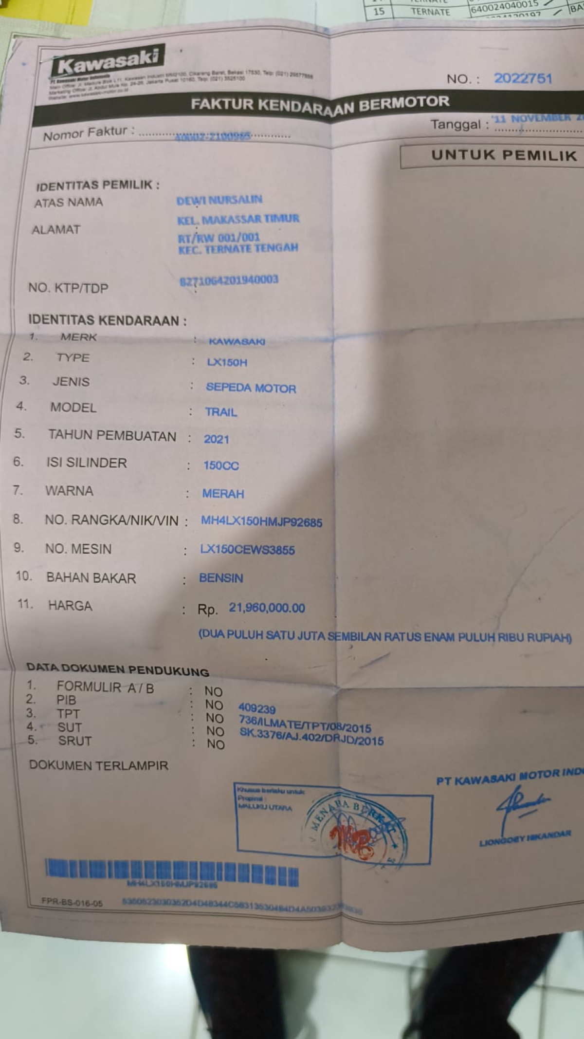 | No. Rangka | : | MH4LX150HMJP92685 |