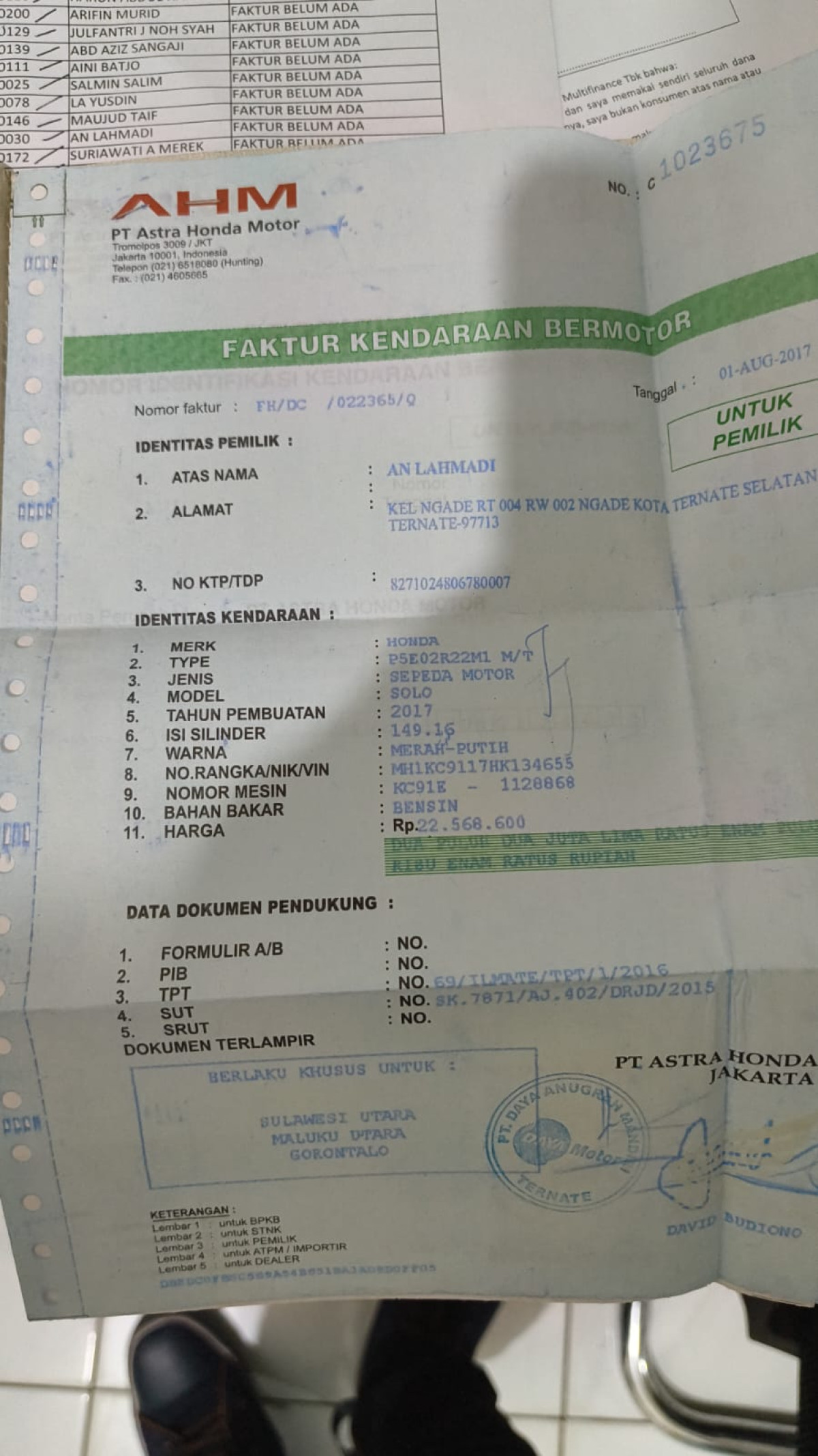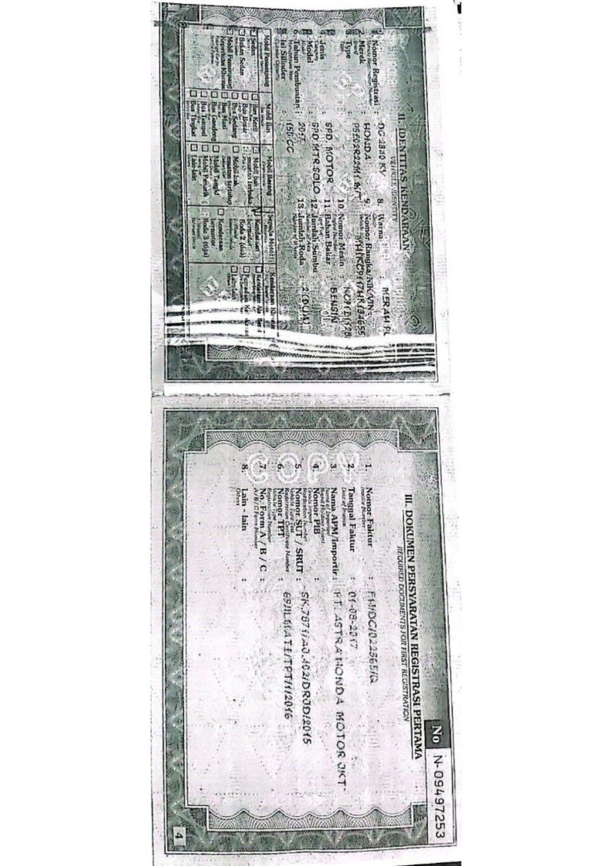 Mesin Mati, Fairing lecet dalam, knalpot di ganti, kunci TA, Stnk TA, KM 0// UNIT TIDAK DILAKUKAN PENGECEKAN OLEH TIM SMARTBID// SEBELUM MELAKUKAN PENAWARAN HARAP CEK KONDISI UNIT DAN DOKUMEN TERLEBIH DAHULU// WAJIB MENGHUBUNGI PIC DAN DATANG KE LOKASI UNTUK PENGECEKAN UNIT// UNIT DILELANG APA ADANYA PERMASALAHAN YANG TIMBUL DILUAR TANGGUNG JAWAB SMARTBID// JIKA INGIN MENGAMBIL UNIT HARAP UNTUK KONFIRMASI DAHULU KE SMARTBID // JIKA YANG MENGAMBIL BIDDER HARAP MEMBAWA KTP ASLI// PENGAMBILAN UNIT H+2 HARI KERJA SETELAH PELUNASAN//