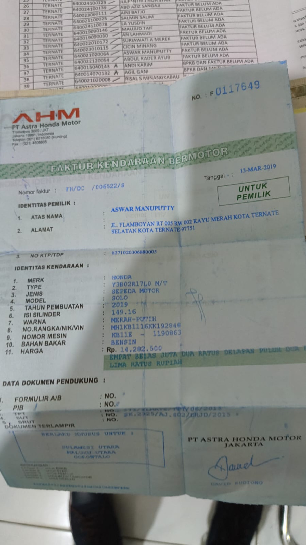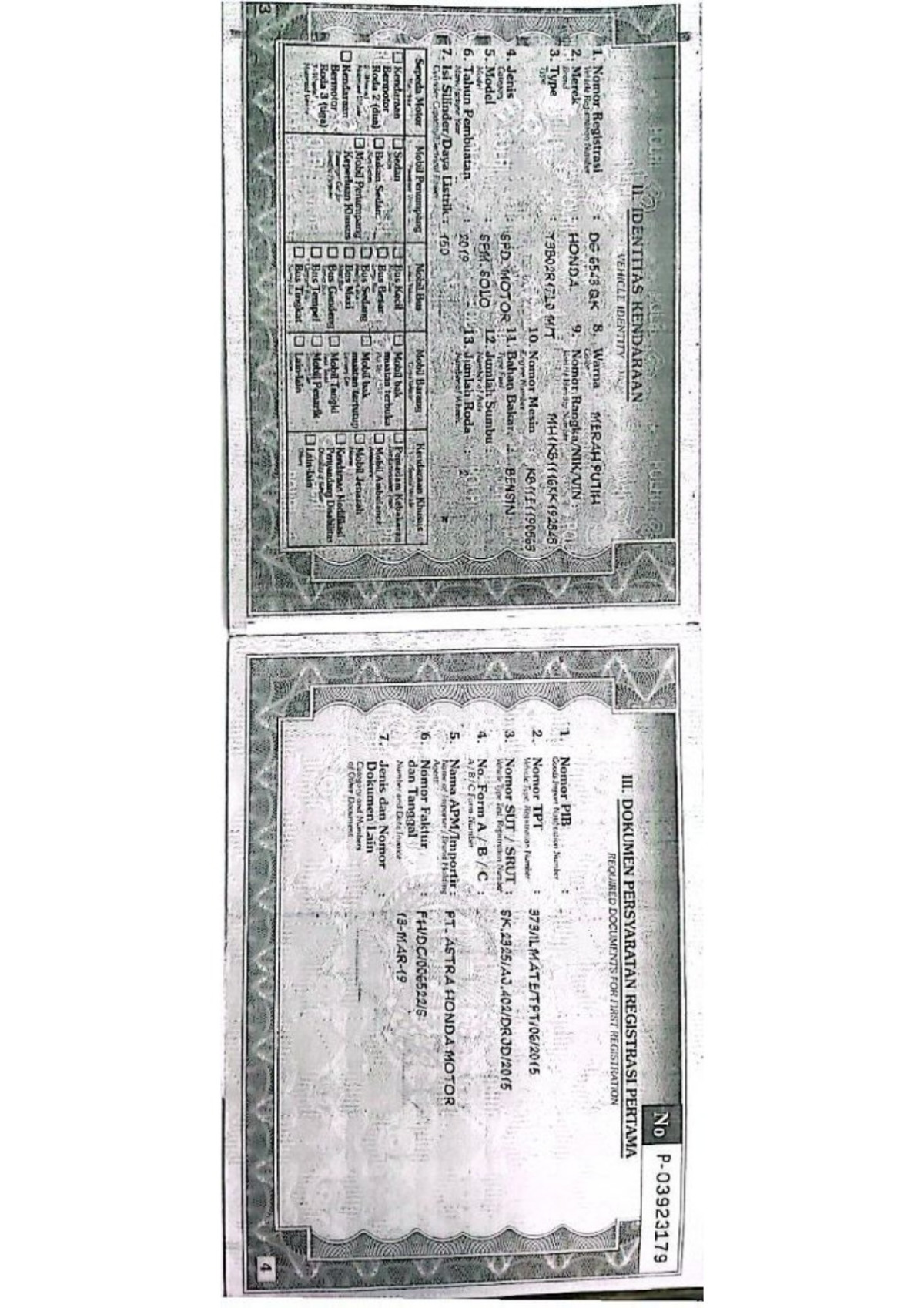Mesin mati, body dan cover TA, STNK TA, KM 0// UNIT TIDAK DILAKUKAN PENGECEKAN OLEH TIM SMARTBID// SEBELUM MELAKUKAN PENAWARAN HARAP CEK KONDISI UNIT DAN DOKUMEN TERLEBIH DAHULU// WAJIB MENGHUBUNGI PIC DAN DATANG KE LOKASI UNTUK PENGECEKAN UNIT// UNIT DILELANG APA ADANYA PERMASALAHAN YANG TIMBUL DILUAR TANGGUNG JAWAB SMARTBID// JIKA INGIN MENGAMBIL UNIT HARAP UNTUK KONFIRMASI DAHULU KE SMARTBID // JIKA YANG MENGAMBIL BIDDER HARAP MEMBAWA KTP ASLI// PENGAMBILAN UNIT H+2 HARI KERJA SETELAH PELUNASAN//
