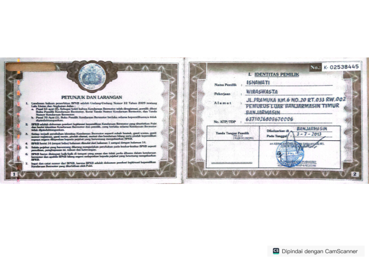 | No. Rangka | : | MHKW3CA2JDK009408 |