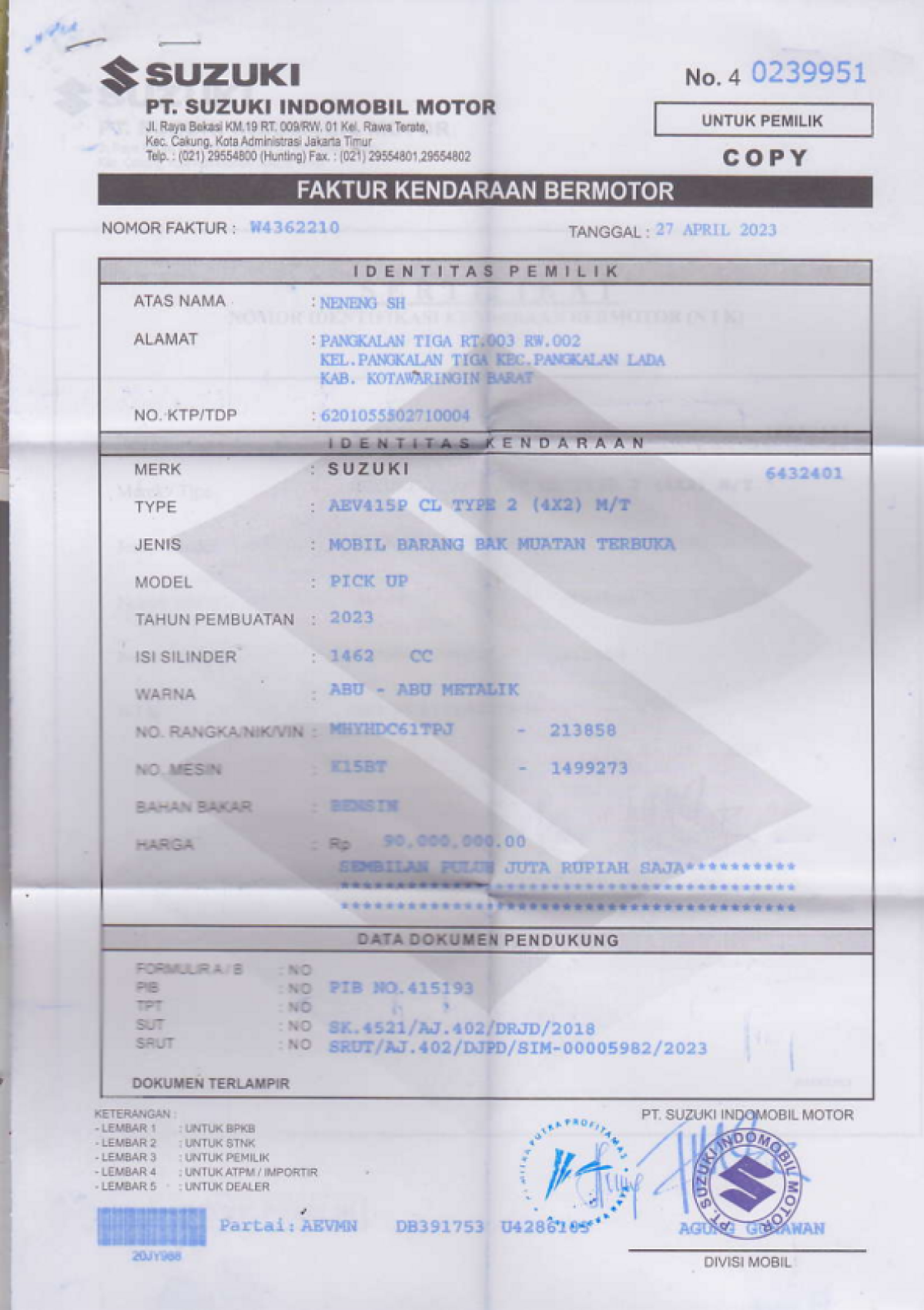 SEBELUM MELAKUKAN PENAWARAN UNIT PESERTA LELANG WAJIB MELAKUKAN PENGECEKAN UNIT DAN DOKUMEN TERLEBIH DAHULU // PIC SEPTI 081254033046 // UNIT DIKENAKAN BIAYA PPN 1.1% DARI HARGA TERBENTUK //NOPOL FISIK TA